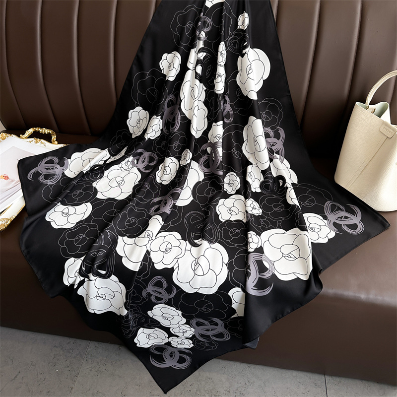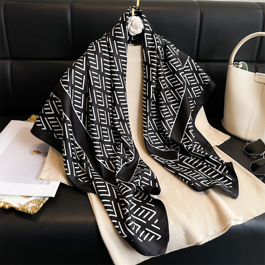 심플 프린트 실크 스카프 여성용 새로운 2022 대형 스퀘어 스카프 90cm 능직 실크 빈티지 모든 매치 숄 여행 자외선 차단제 머리 스카프