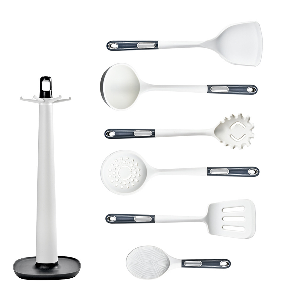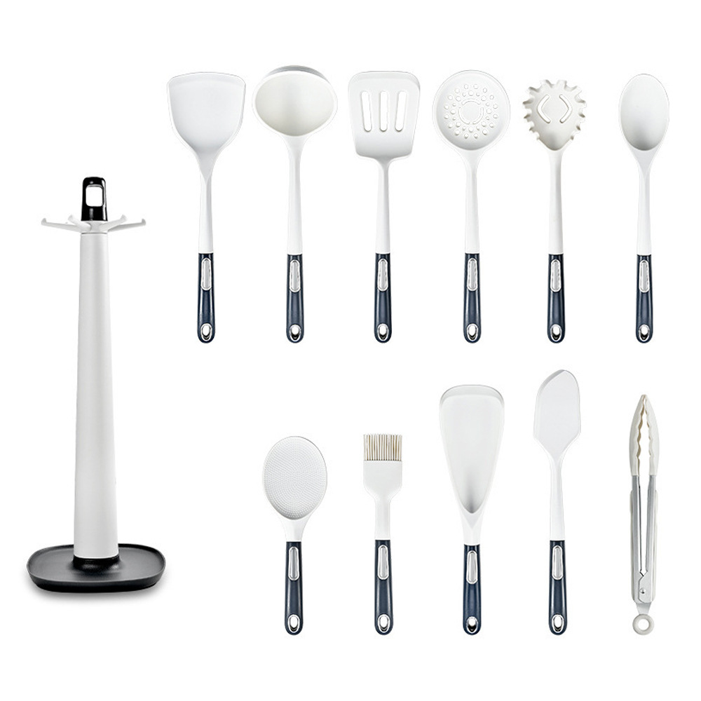 单个产品重量:铲100g,漏铲102g,汤勺125g,漏勺90g,饭勺81g,小汤勺87g,粉爪91g,方铲96g,油刷67g,刮刀80g,食物夹102g,瓜刨62g,收纳座190g