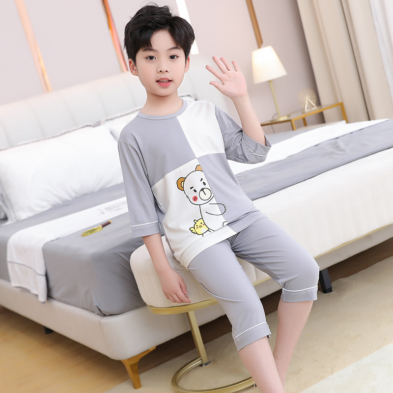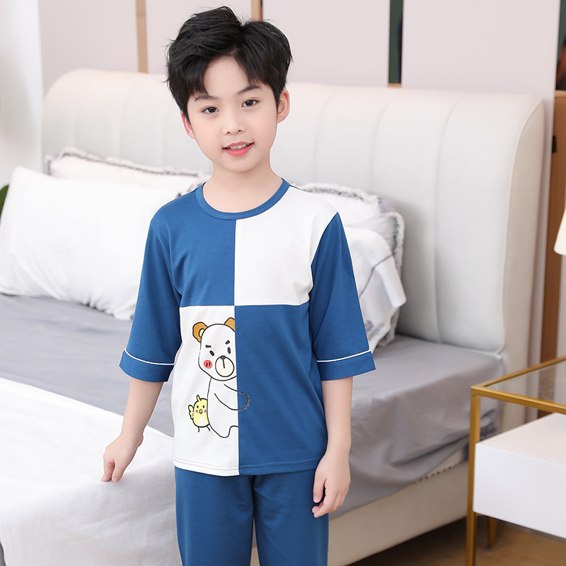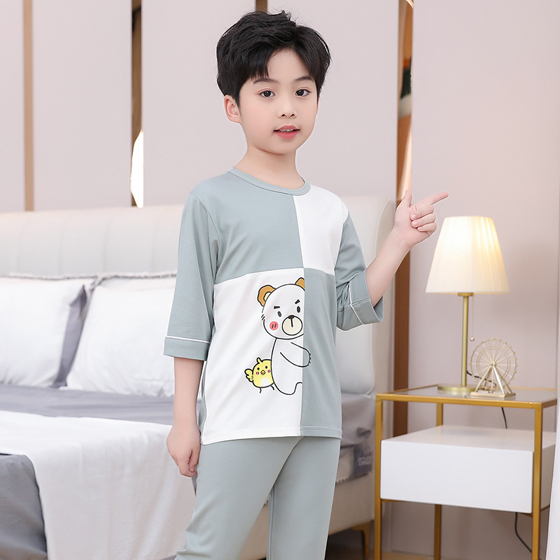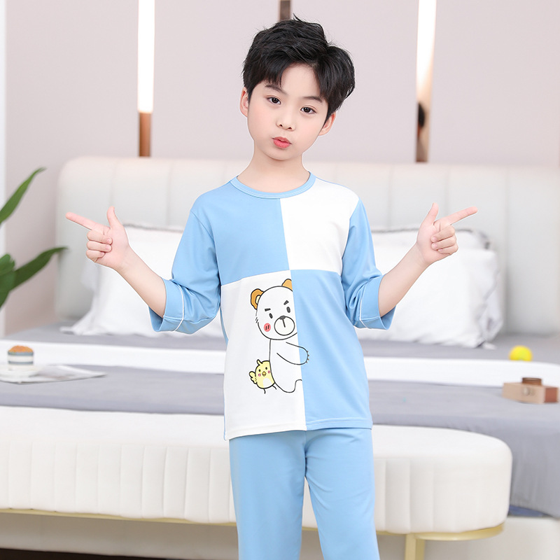 아동 잠옷, 여름 미드 슬리브 슈트, 유아용 에어컨 의류, 중대형 아동 가정복, 남아 및 여아용 모달 의류스토어 가기