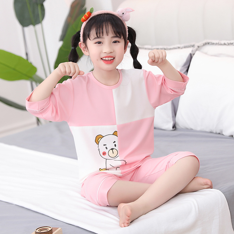 아동 잠옷, 여름 미드 슬리브 슈트, 유아용 에어컨 의류, 중대형 아동 가정복, 남아 및 여아용 모달 의류