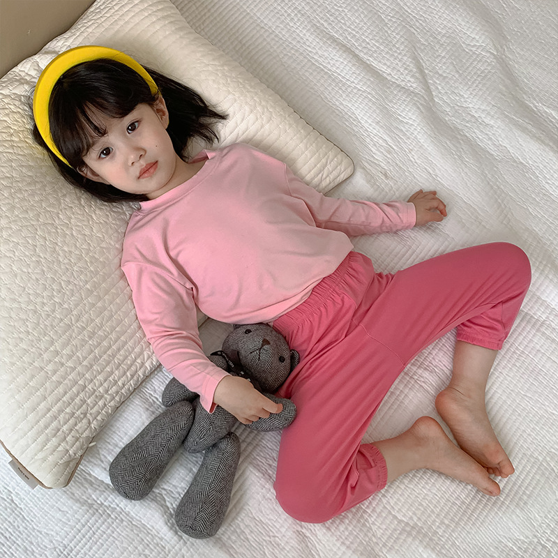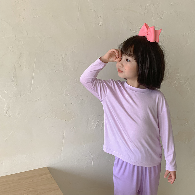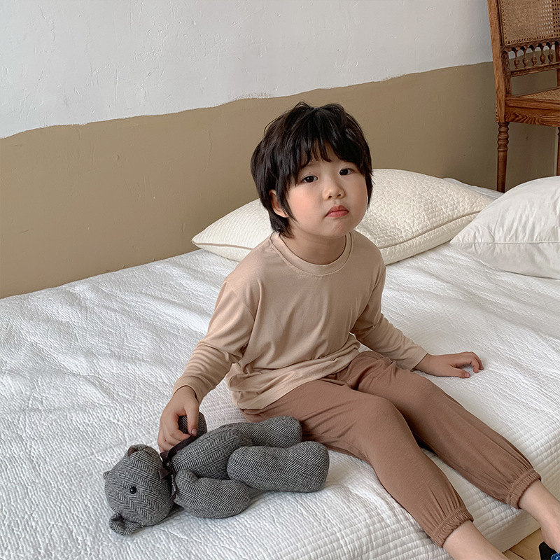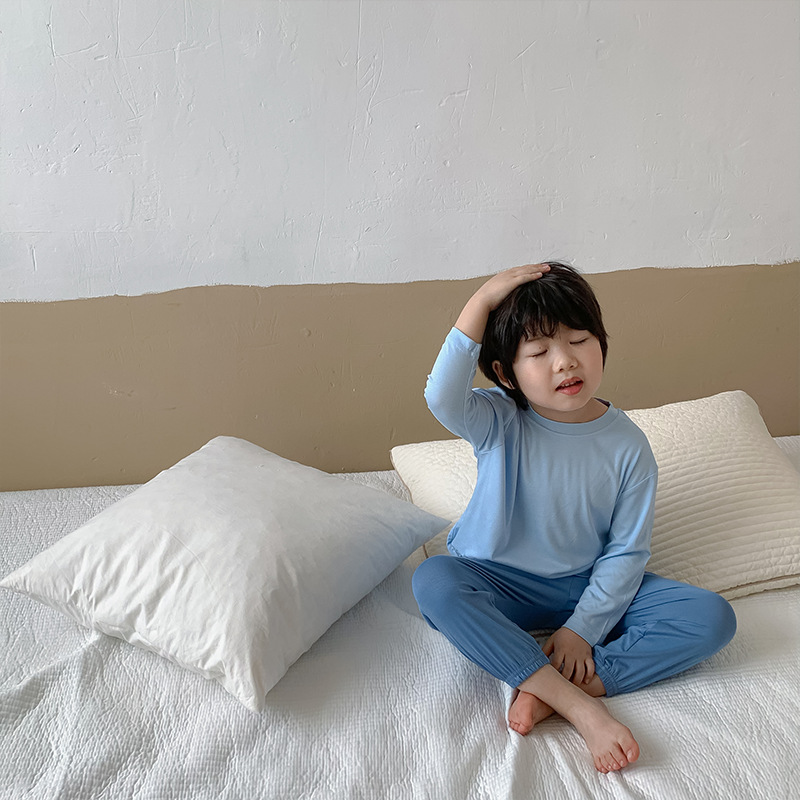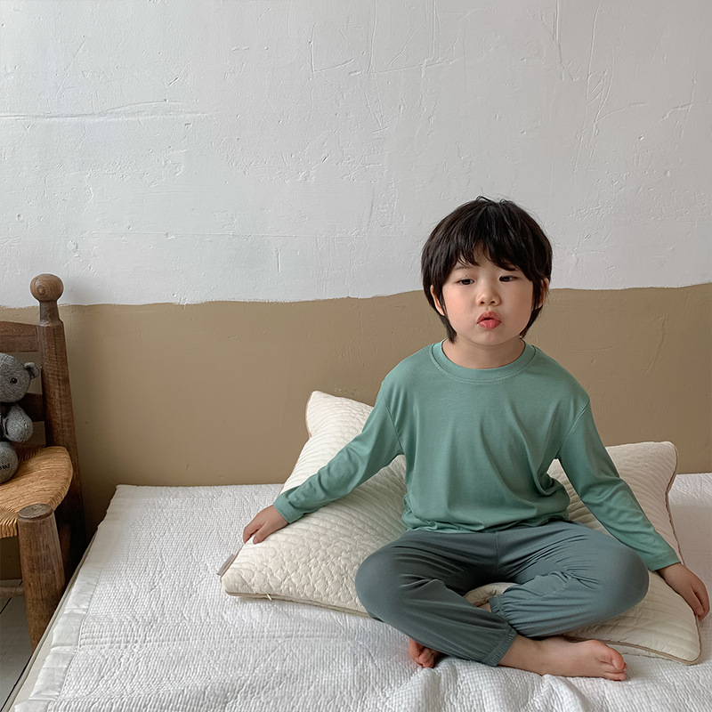 대비 색상 50 모달 어린이 가정 옷 세트 얇은 긴 소매 봄과 여름 갈비 통기성 소년과 소녀 잠옷