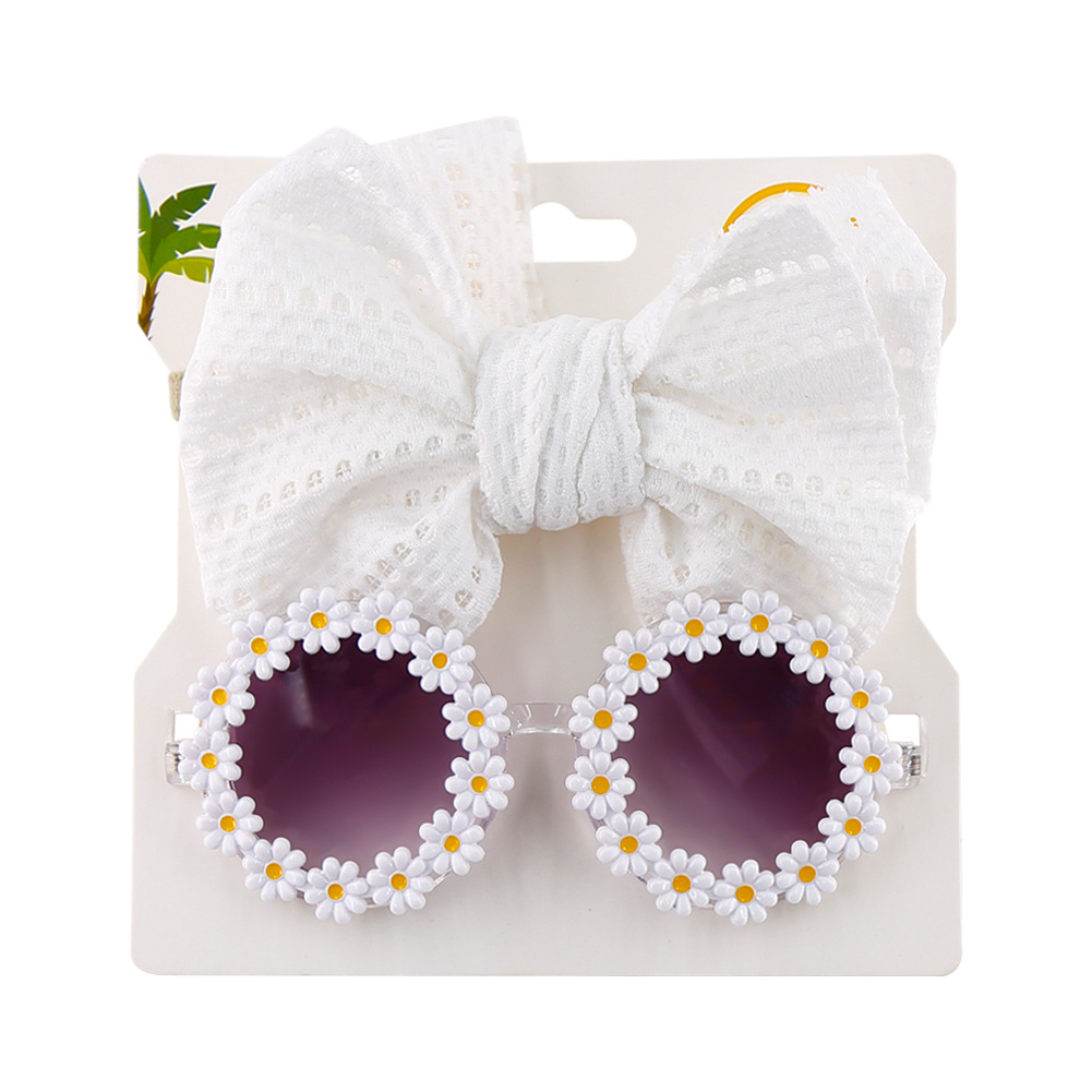 어린이 선글라스 머리띠 세트 아기 데이지 만화 장난감 해바라기 차양 안경 단색 중공 헤어 밴드스토어 가기