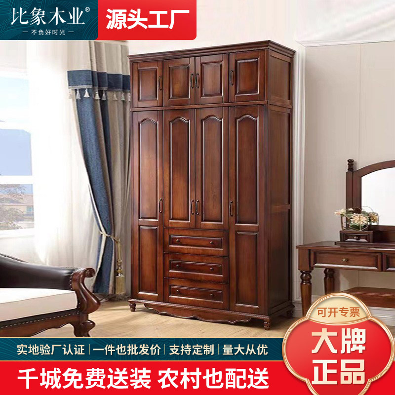 미국 스타일의 단단한 나무 옷장 국가 레트로 빛 고급 홈 마스터 침실 3 문 4 문 5 문 나무 캐비닛 대형 옷장