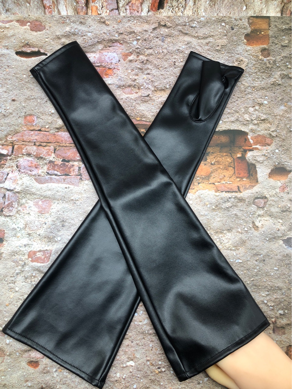 가을과 겨울 여성의 따뜻한 손가락 팔꿈치 반점 검은 반 손가락 장갑 운전 패션 매칭 아이템스토어 가기