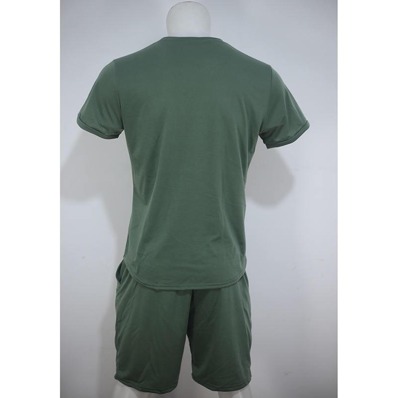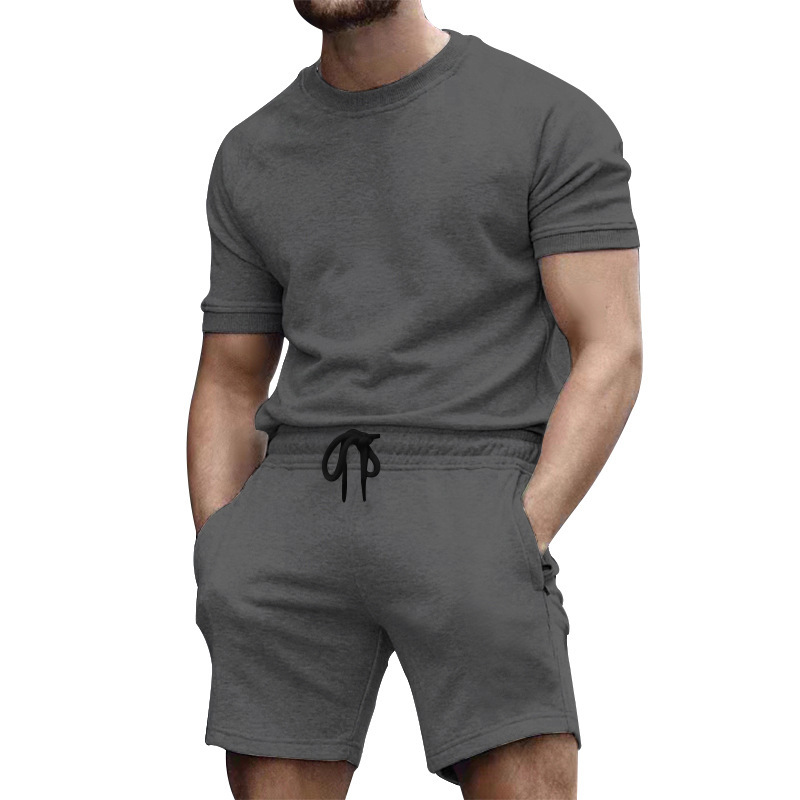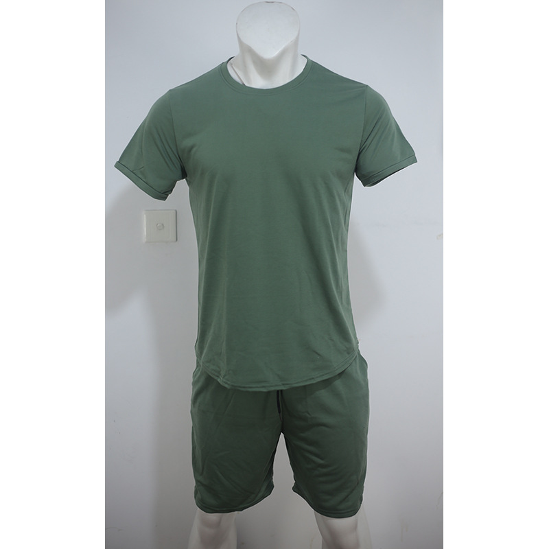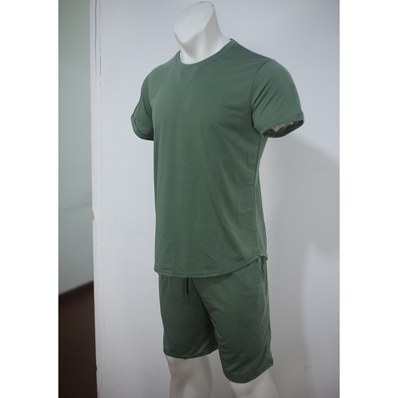 유럽과 미국 반팔 티셔츠 남성용 세트 여름 캐주얼 단색 인쇄 투피스 스포츠 세트 트렌디 바지 남성용 티셔츠