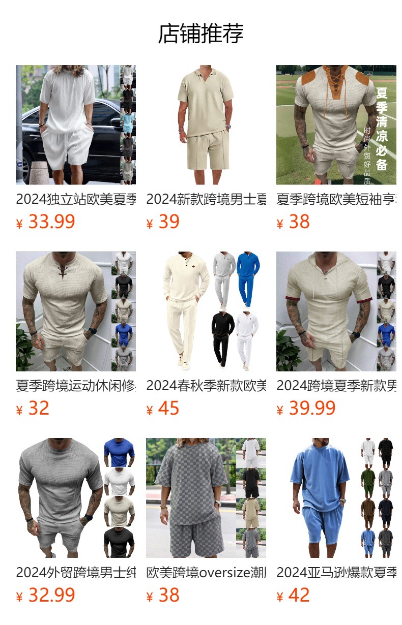 유럽과 미국 반팔 티셔츠 남성용 세트 여름 캐주얼 단색 인쇄 투피스 스포츠 세트 트렌디 바지 남성용 티셔츠스토어 가기