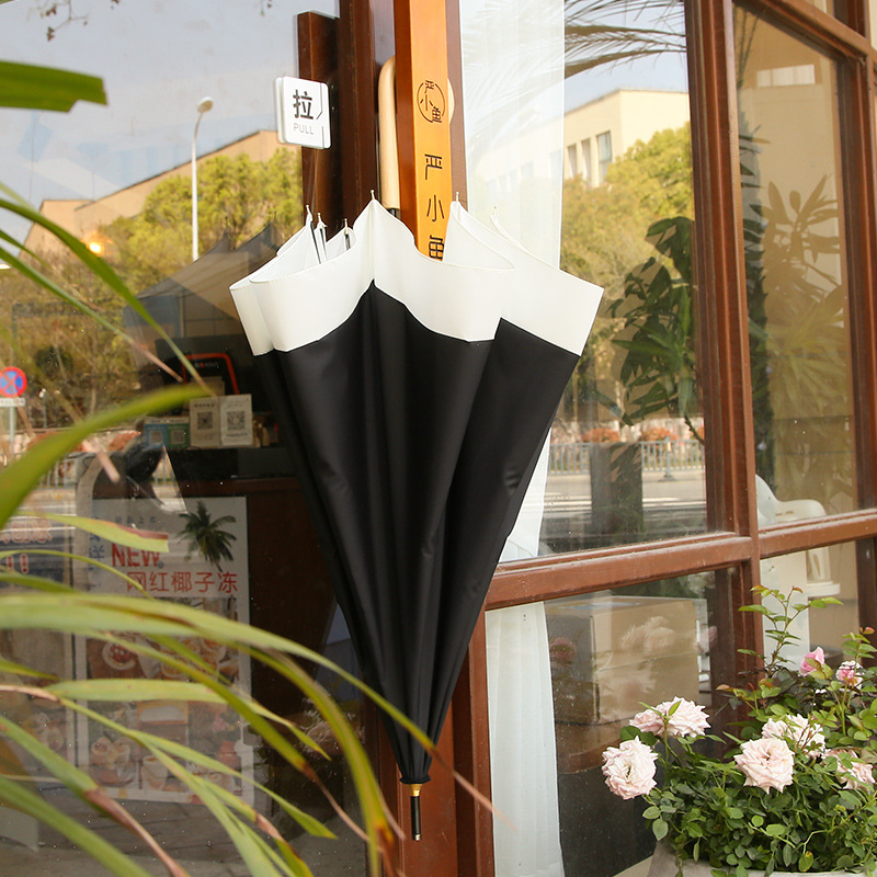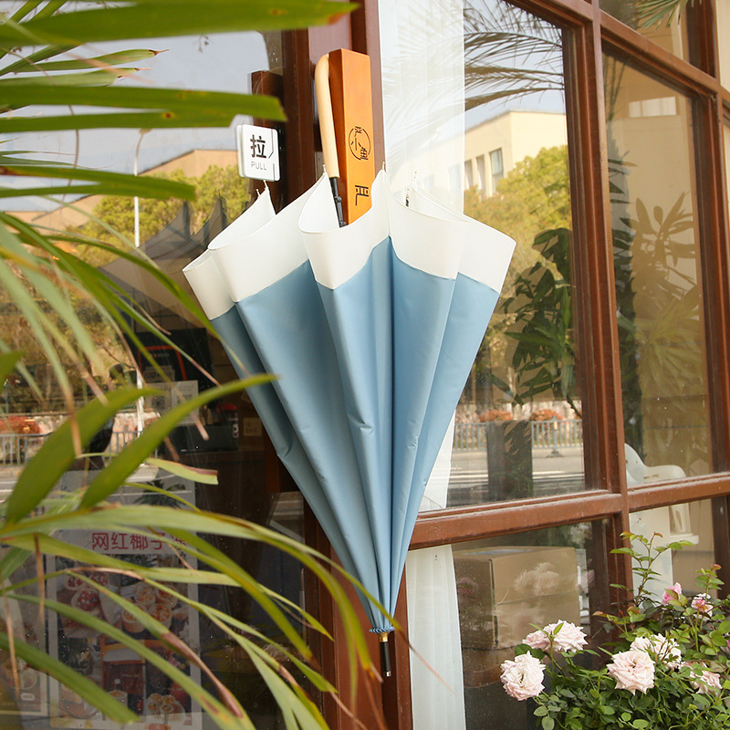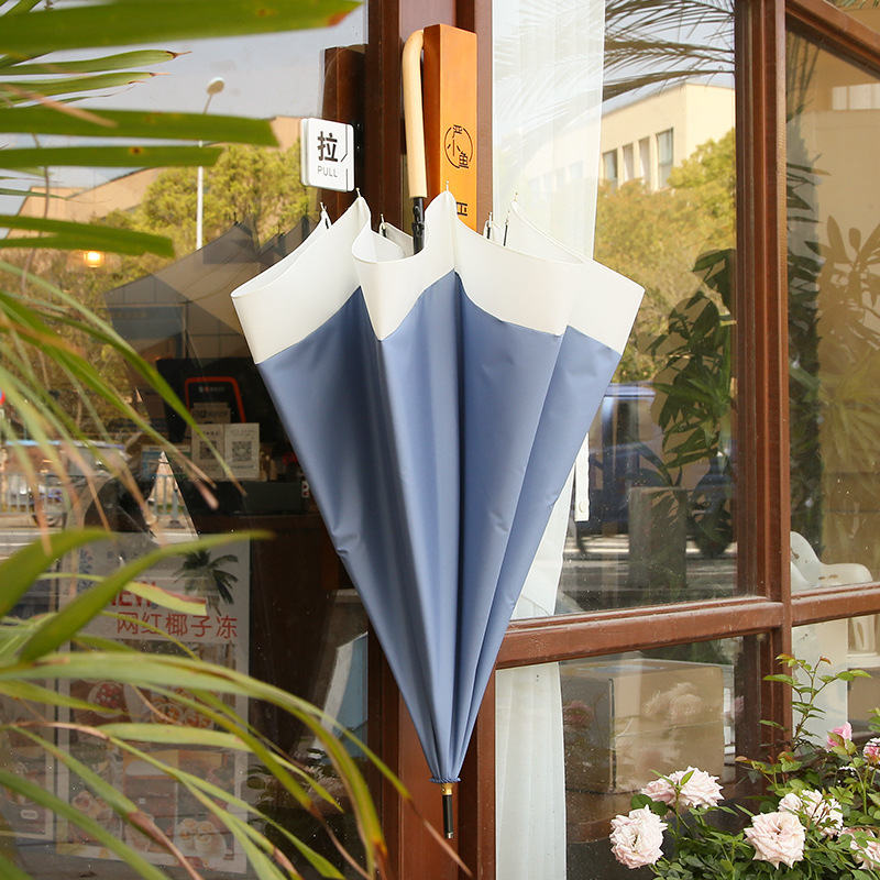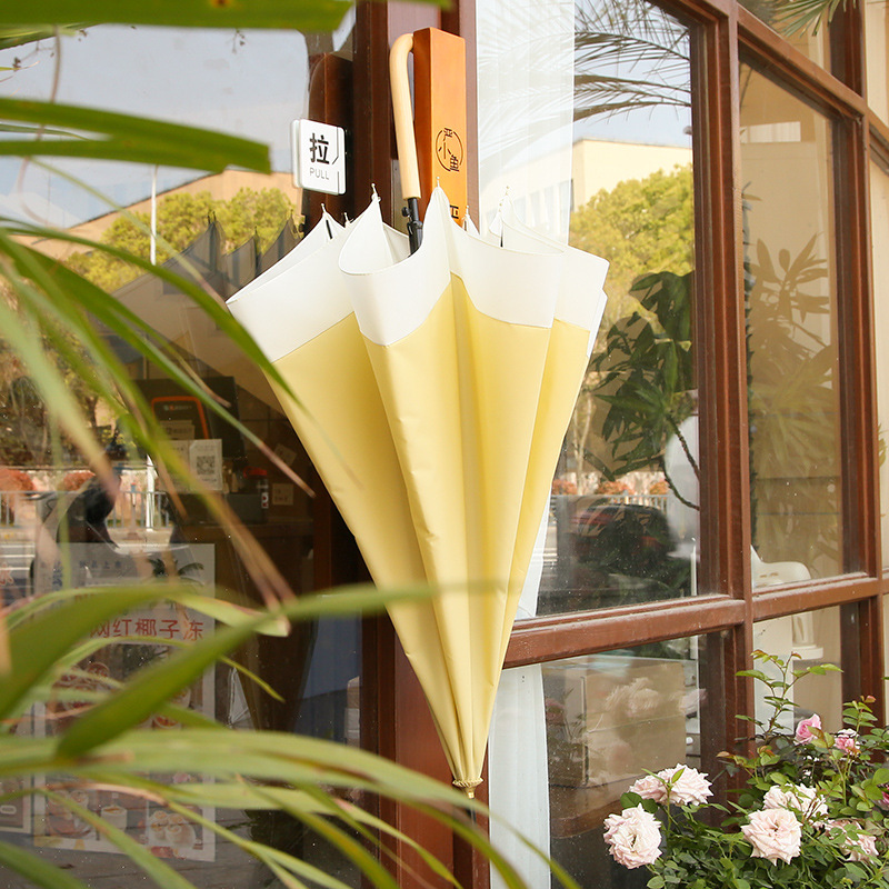 In Mori 작은 신선한 긴 손잡이 우산 접합 곡선 핸들 직선 우산 여성의 자동 단색 우산 제조 업체 도매