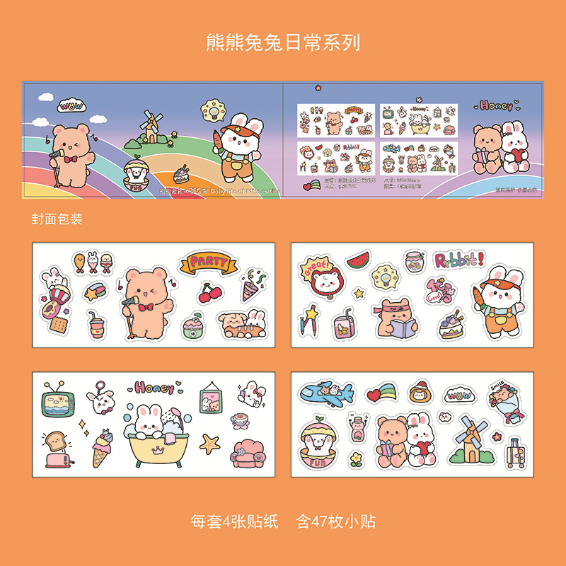 에 귀여운 만화 수첩 스티커 곰 토끼 pvc 방수 단열 유리 물 컵 스티커 노트북 핸드북스토어 가기