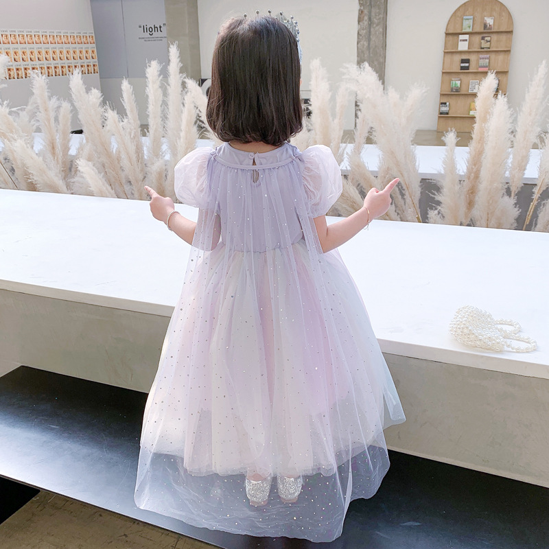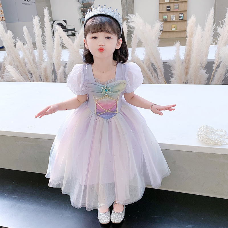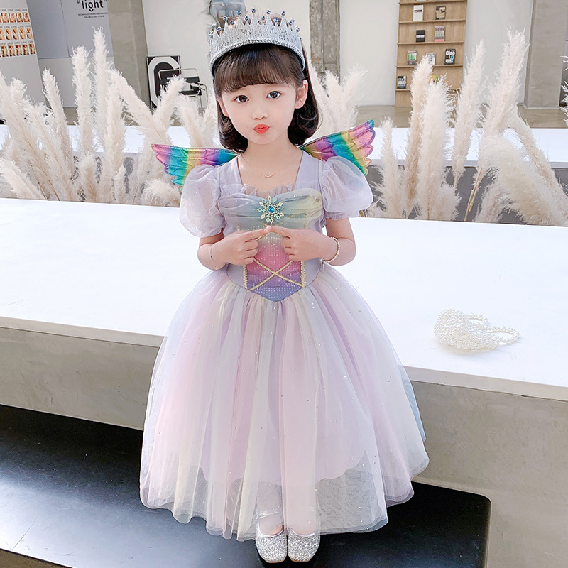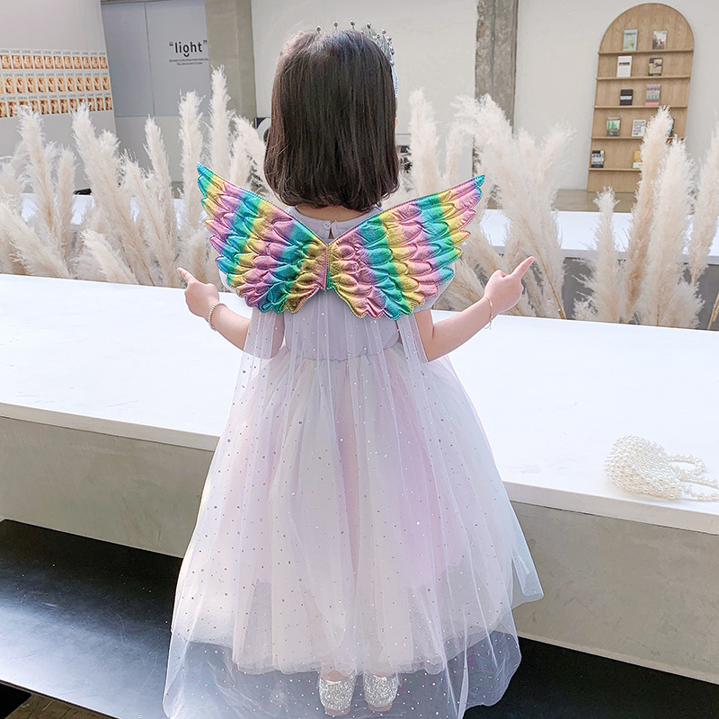 여자 여름 공주 원피스 어린이 여름 원피스 한국 스타일 서양 스타일 무지개 날개 중간 길이 얇은 명주 그물 치마