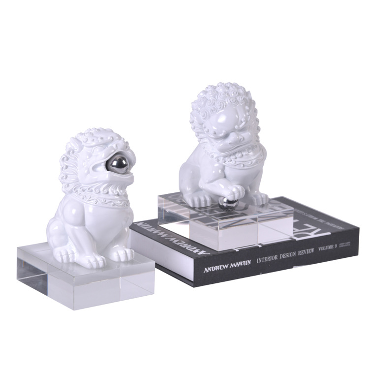 새로운 중국 투명한 수지 사자 장식 사무실 연구 책장 입구 모델 방 조각 공예 장식