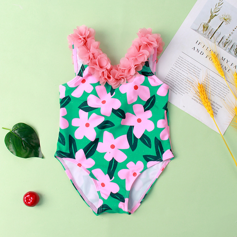 새로운 여아 원피스 수영복 플라워 패턴 어린이 수영복 편안한 고탄력 아기 여아 어린이 수영복