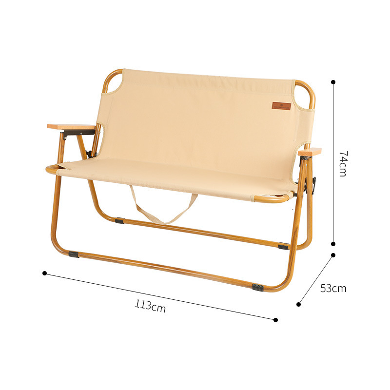 알루미늄 합금 우드 그레인 더블 접이식 의자 야외 휴대용 접이식 의자 레저 캠핑 피크닉 더블 비치 의자