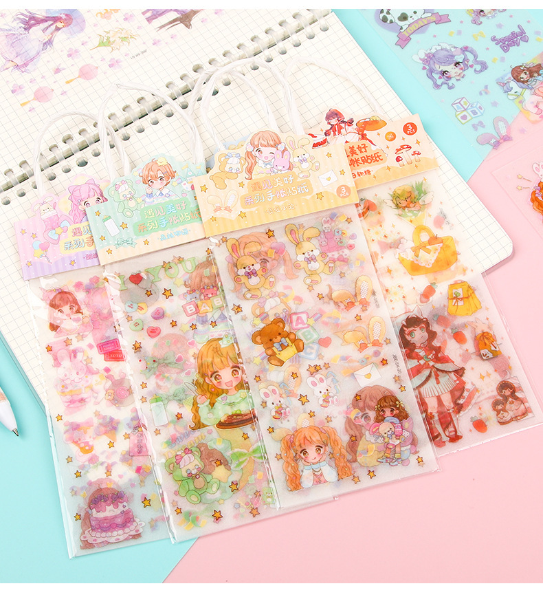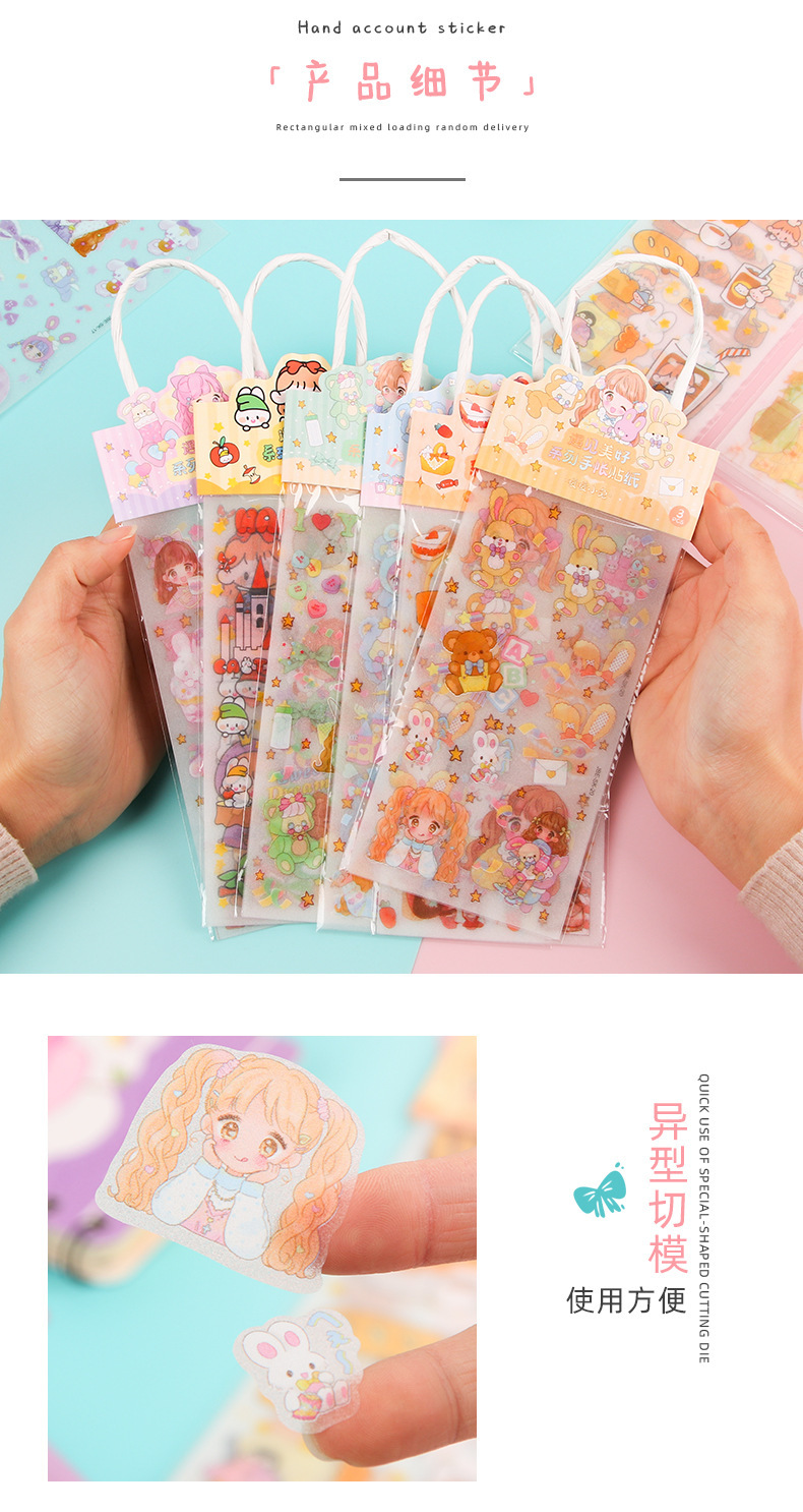 창조적 인 Ins 바람 손 계정 스티커 애완 동물 만화 반복 장식 스티커 귀여운 어린이 여성 선물 구오 카드 스티커 종이 가방