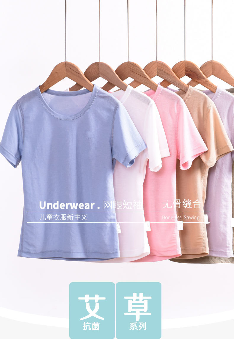 통관 모기 방지 식물 쑥 통기성 여름 경량 어린이 티셔츠 반팔 메쉬 소년 소녀 중대형 어린이 반팔