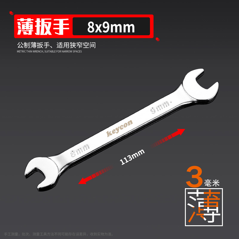 KEYCON 진카이 초박형 렌치 메트릭 3mm 두께 렌치 양단 개방형 스패너 레벨링 렌치