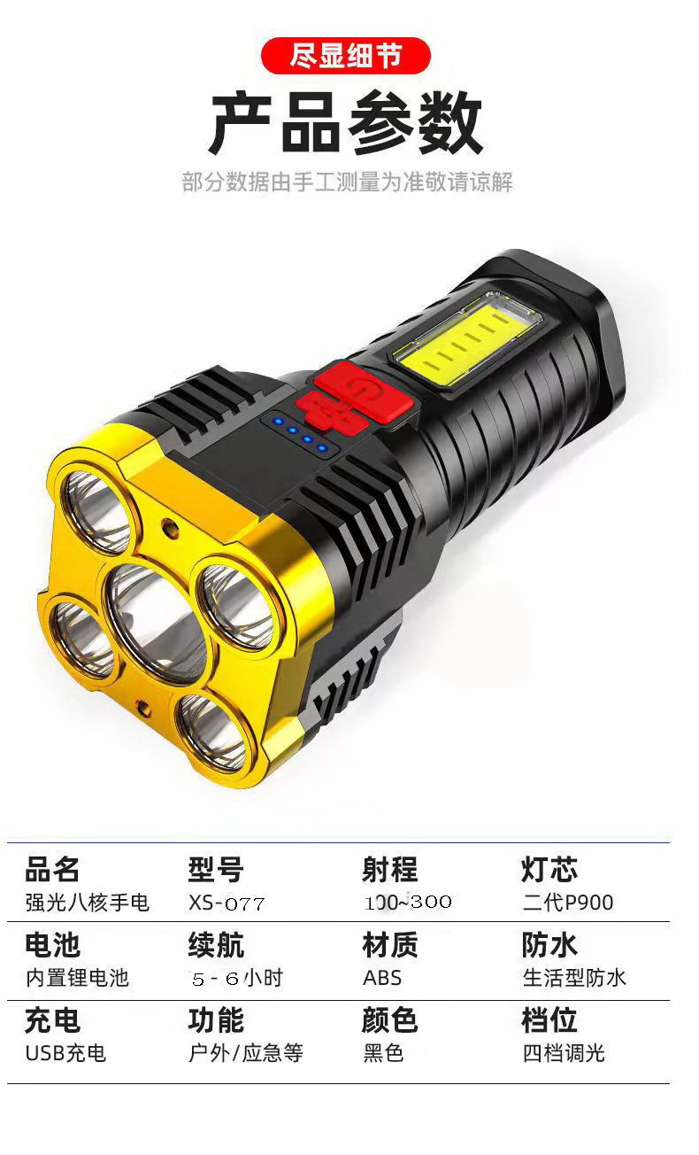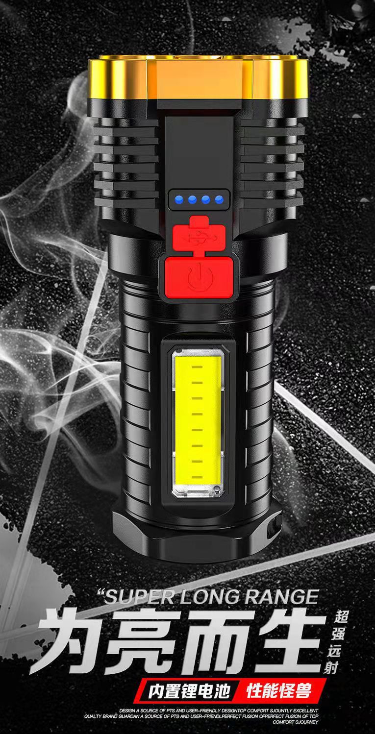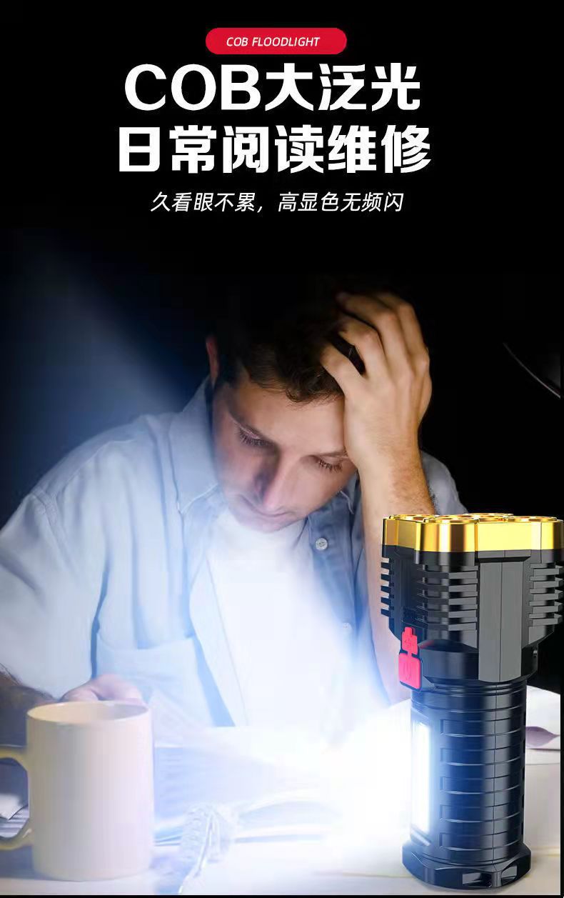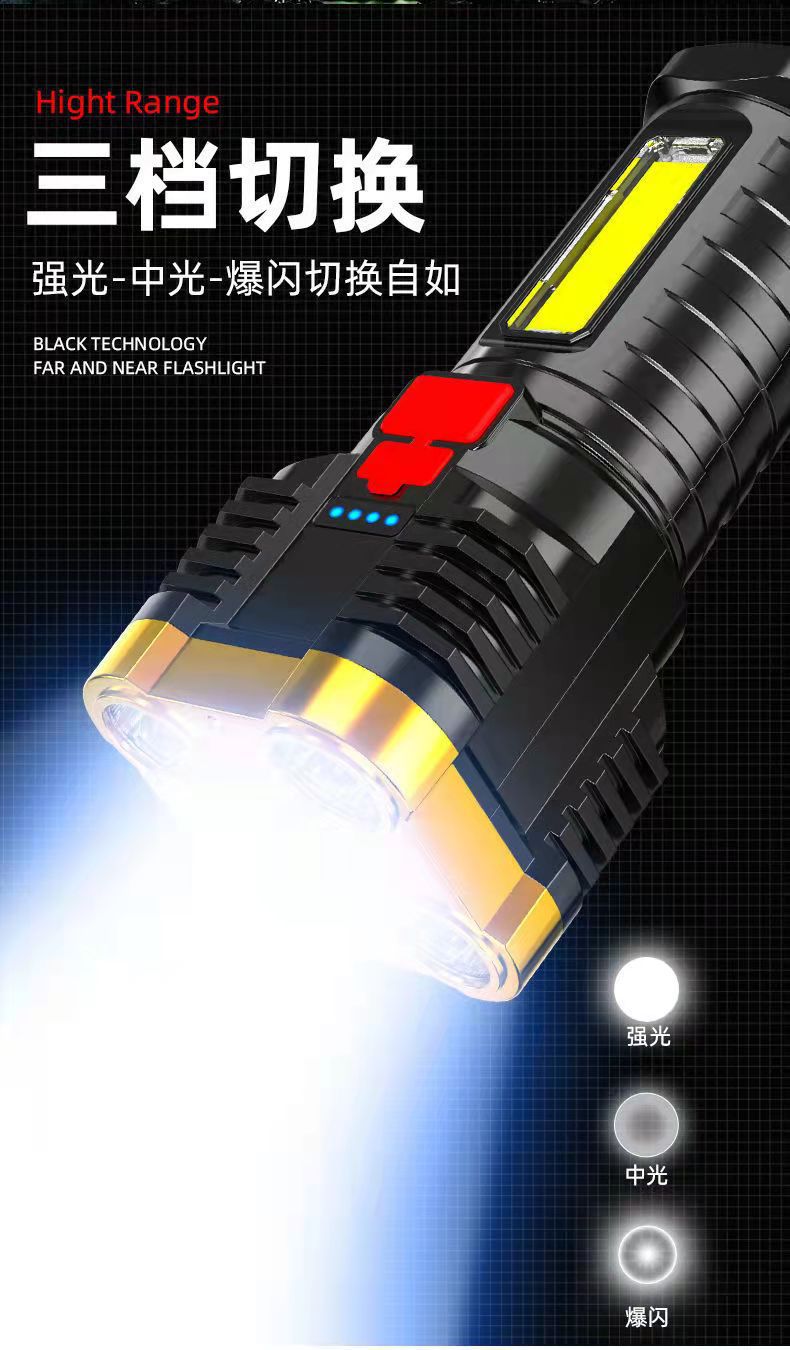크로스 보더 7 램프 비즈 주도 다기능 강한 손전등 COB 측면 조명 야외 휴대용 가정용 USB 충전식 손전등