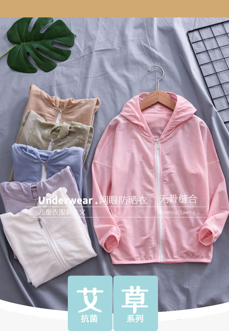모기 방지 식물 쑥 항균 메쉬 어린이 여름 에어컨 의류 소년 소녀 외출을위한 태양 보호 의류스토어 가기