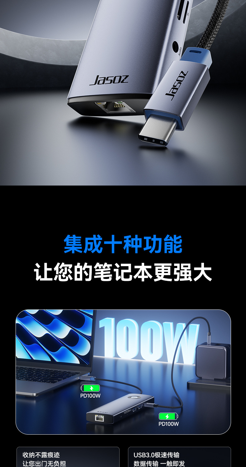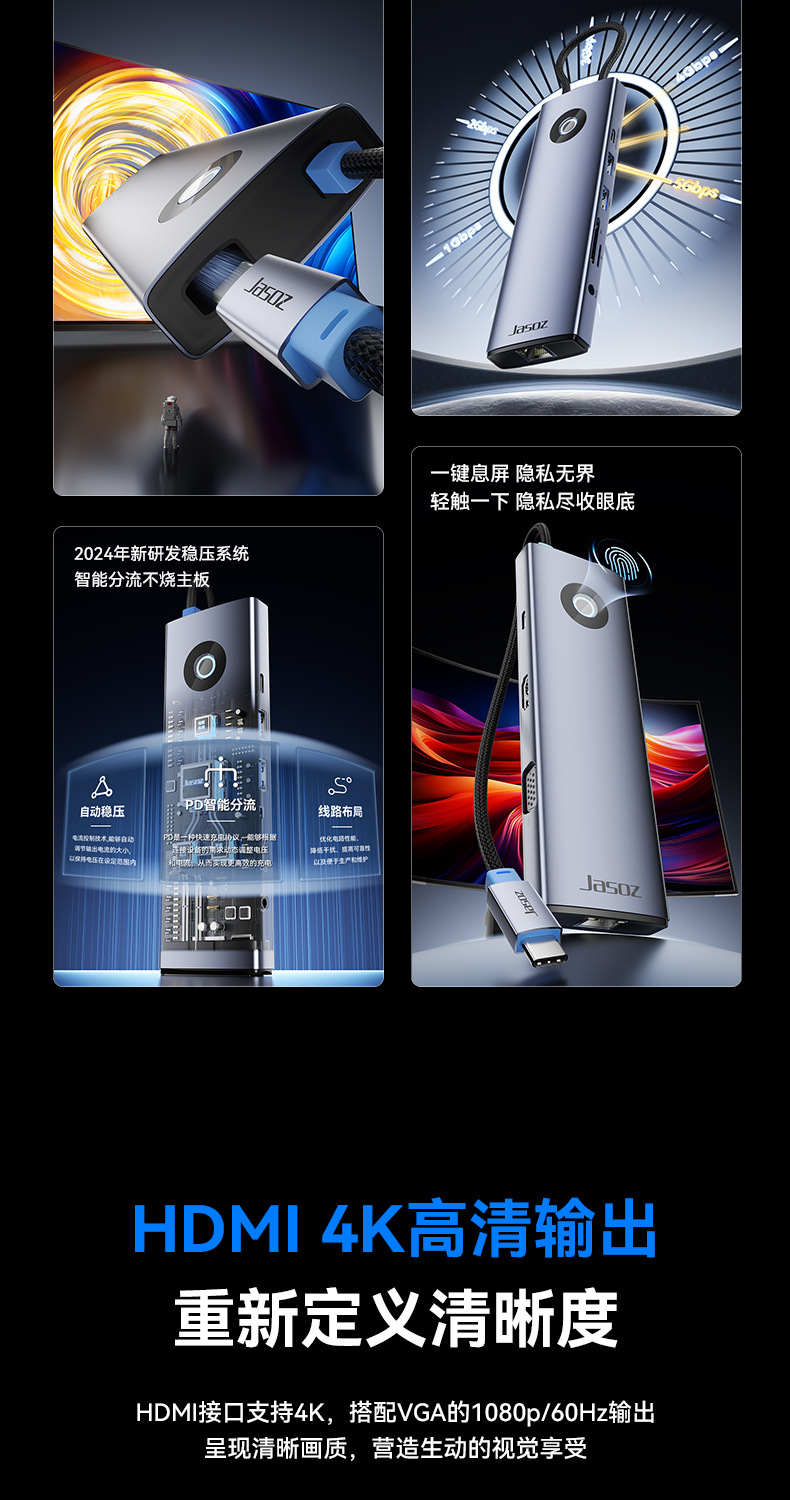 • 하나의 USB3.0 * 3 + 3.5AV + PD + HDMI * 2 + VGA + SD에서 H114 Type-C 확장 도크 11