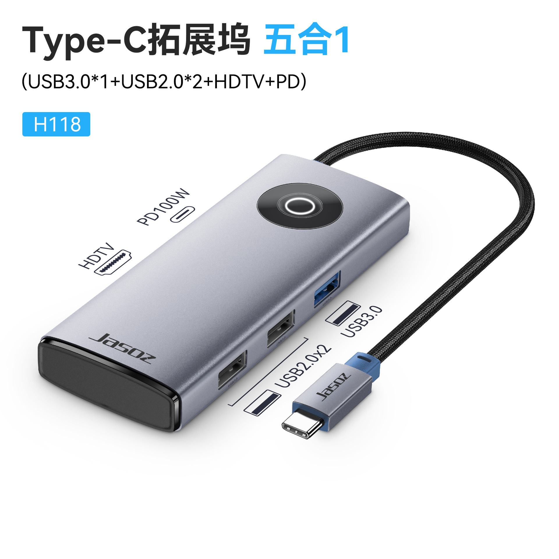 • H118 Type-C 도킹 스테이션 5-in-1 USB3.0*1+USB2.0*2+HDMI+PD