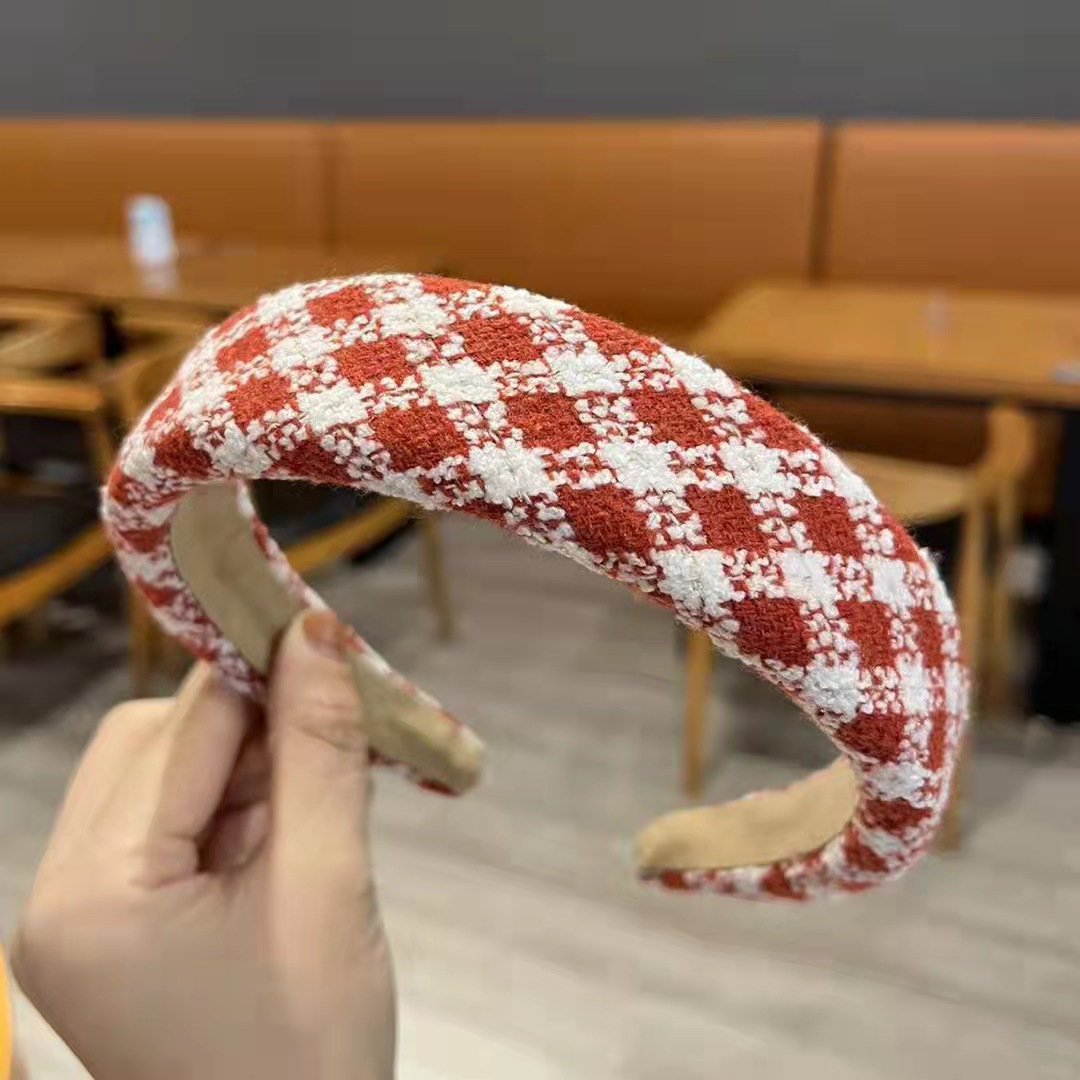 한국식 인터넷 연예인 패션 헤어 후프 ~ 격자 무늬 단색 하이 두개골 탑 헤드 후프 가을과 겨울 아웃 압력 모발 기질 헤어 액세서리 헤어 클립