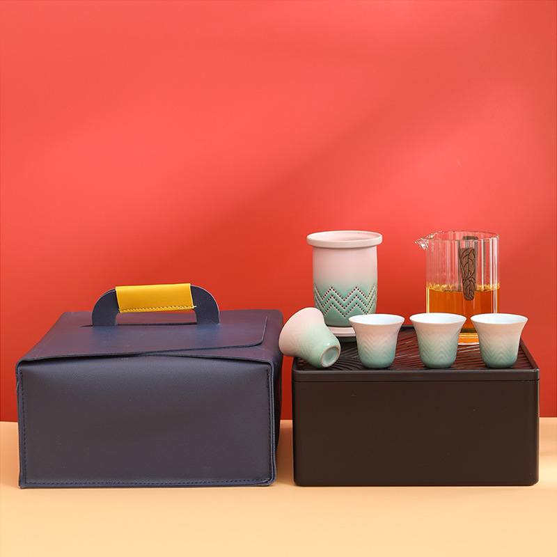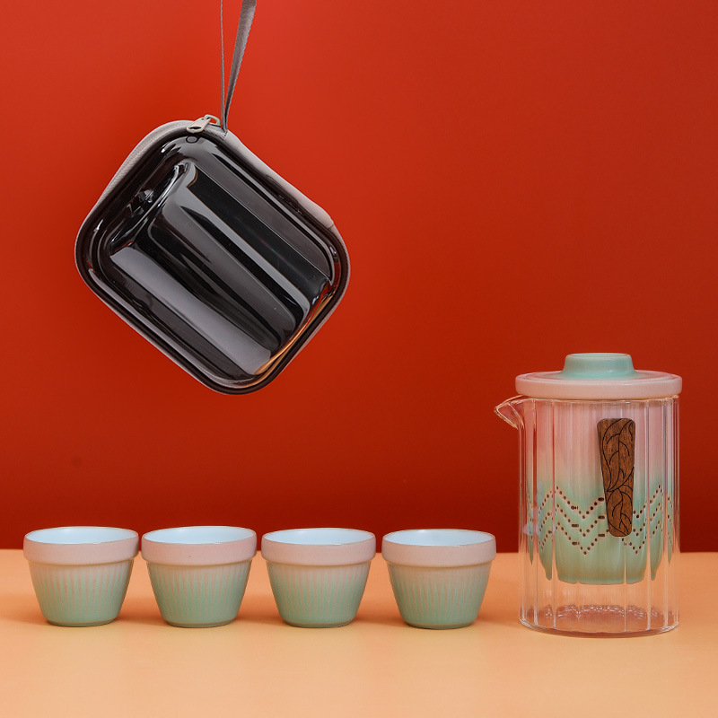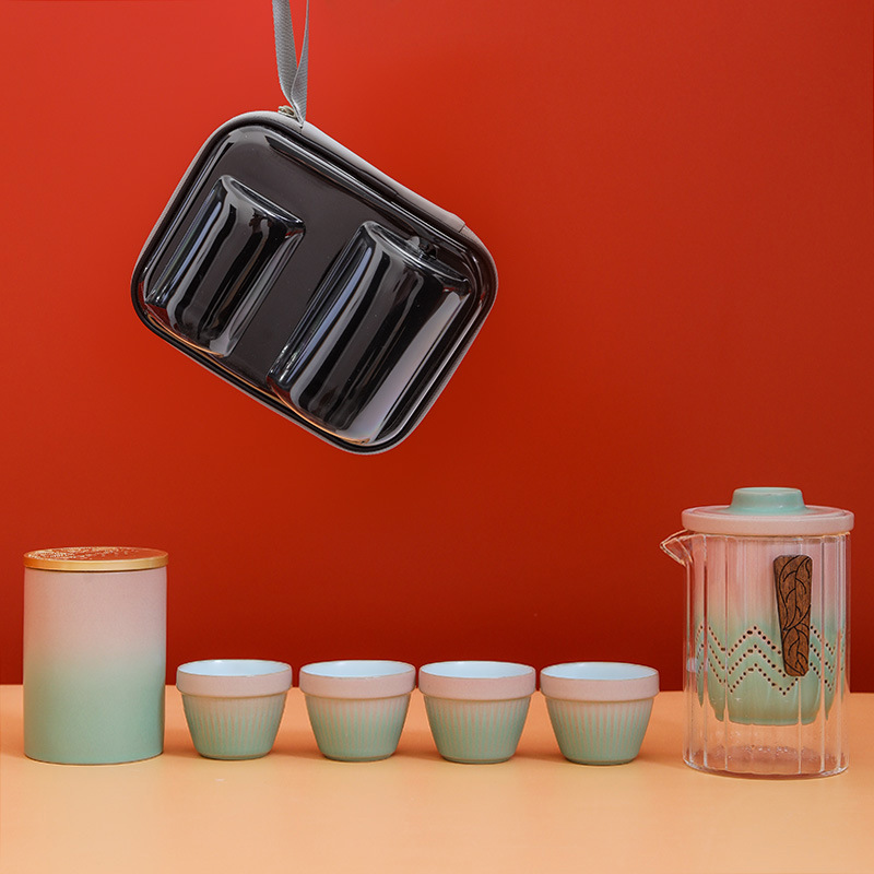 • 그라디언트 녹색 여행 차 세트 + 차 주전자 + 여행 가방