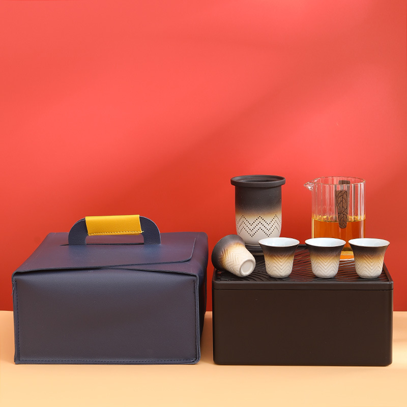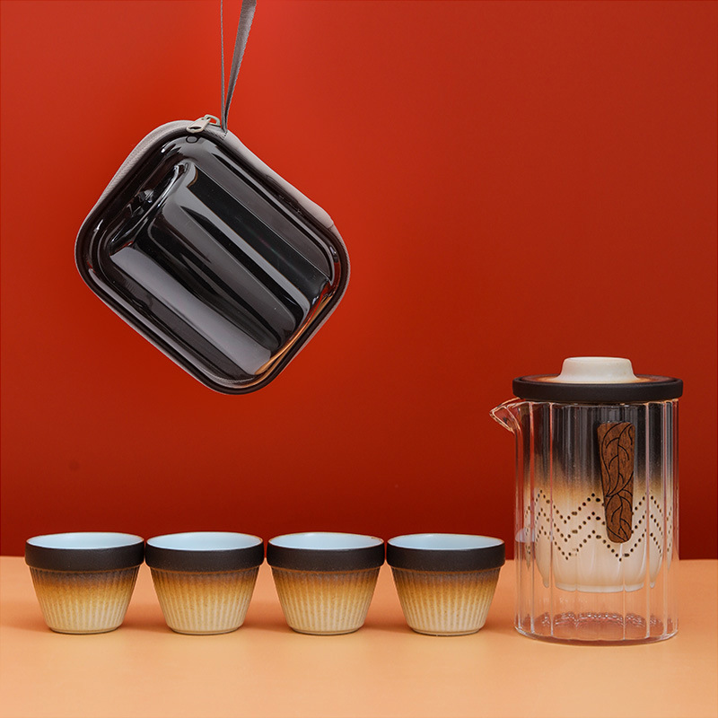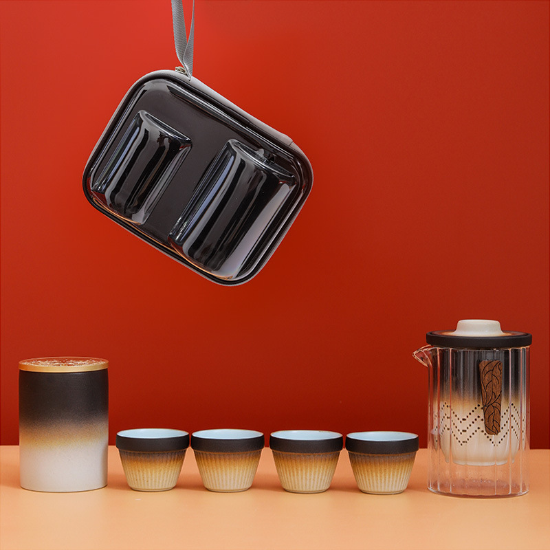 • 그라디언트 블랙 여행 차 세트 + 차 주전자 + 여행 가방