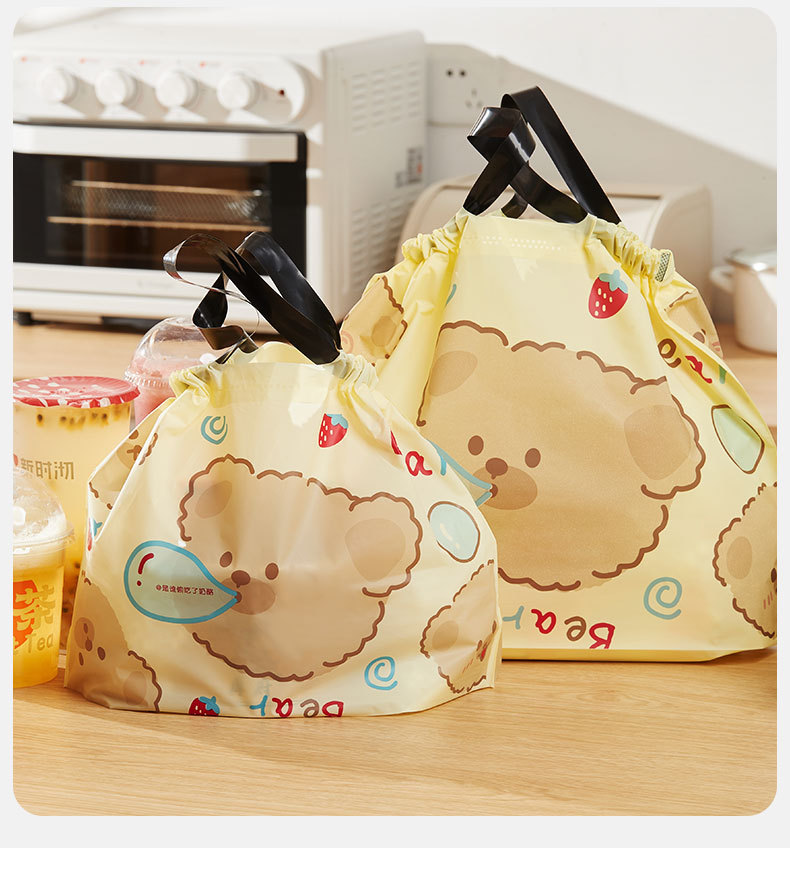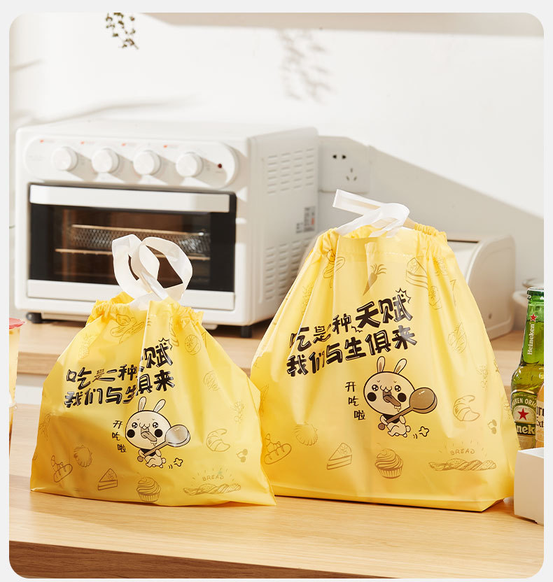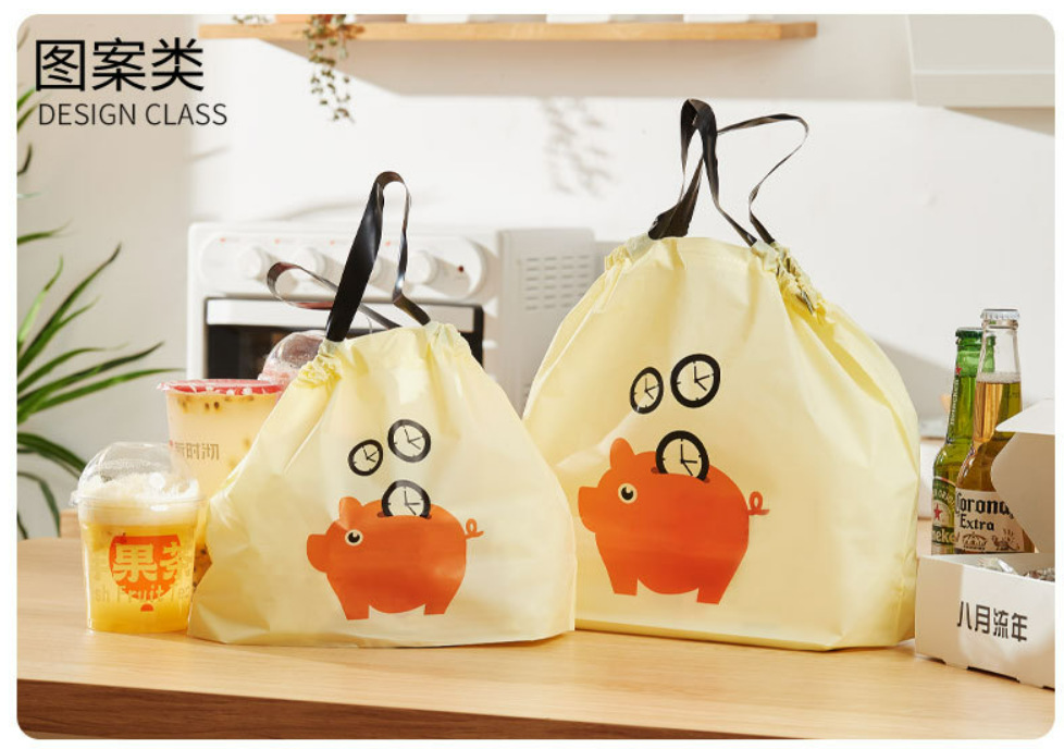 테이크아웃 포장 백, 일회용 PE 두꺼운 휴대용 케이터링 비닐 봉투, 로고 인쇄, 내유성 졸라매는 끈 가방 디자인 도매스토어 가기