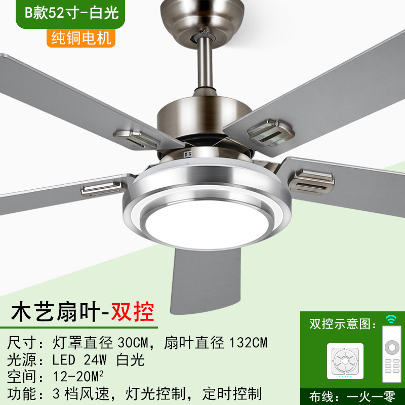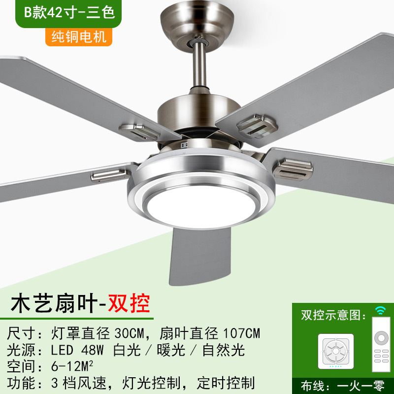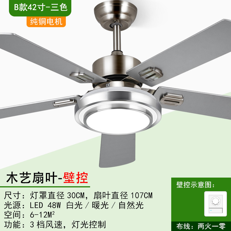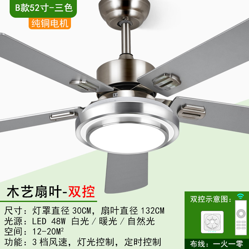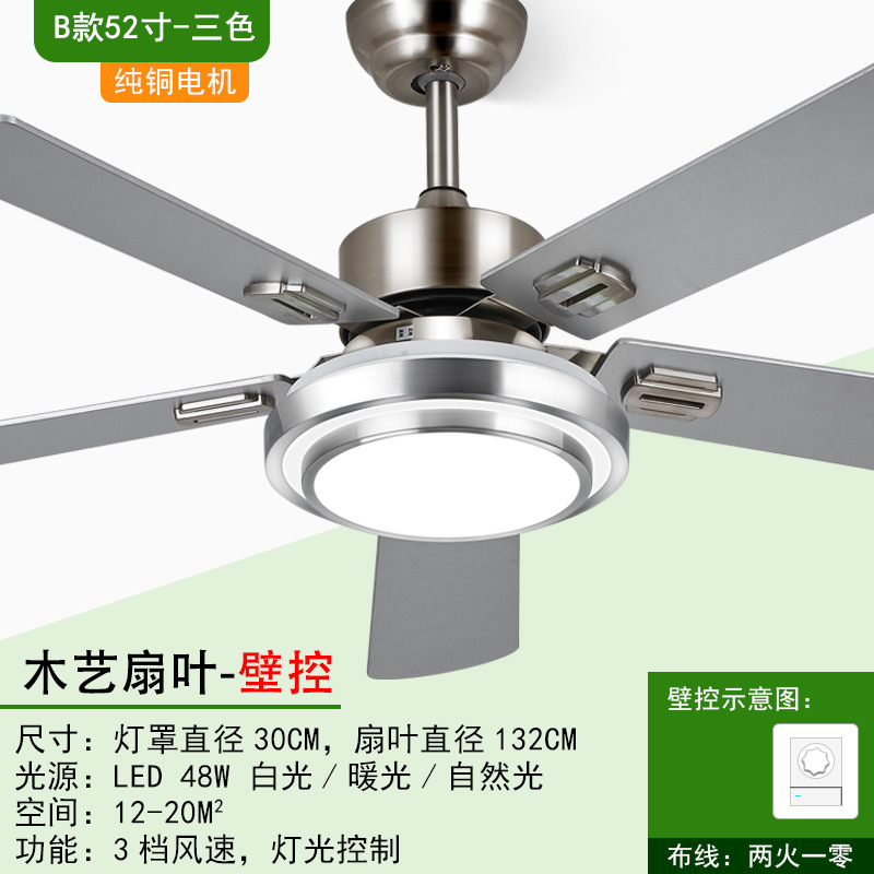 • 벽 제어 기능이있는 52 인치 우드 리프 3 색 디밍