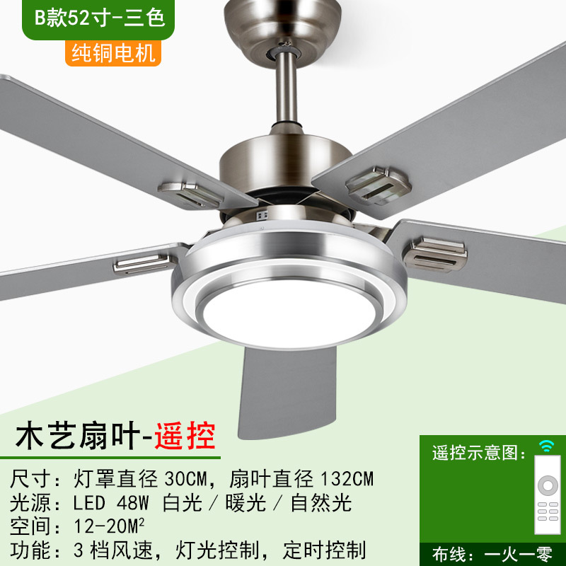 • 원격 제어로 52 인치 우드 리프 3 색 디밍