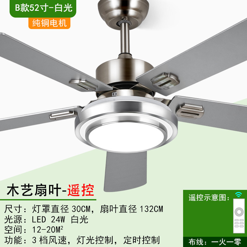 • 52 인치 스테인레스 스틸 리프 화이트 리모콘 포함