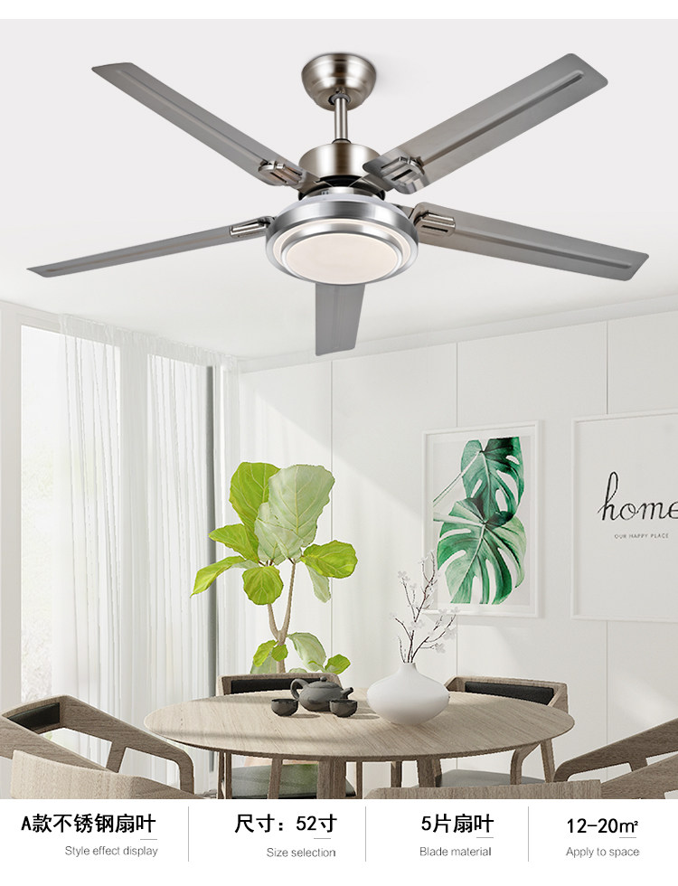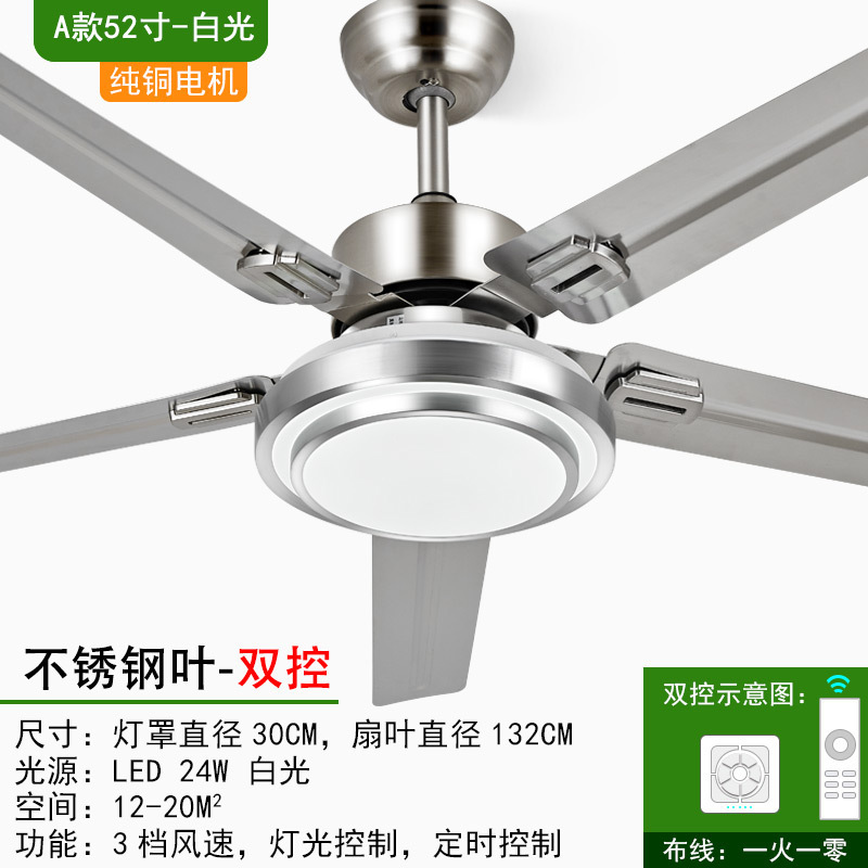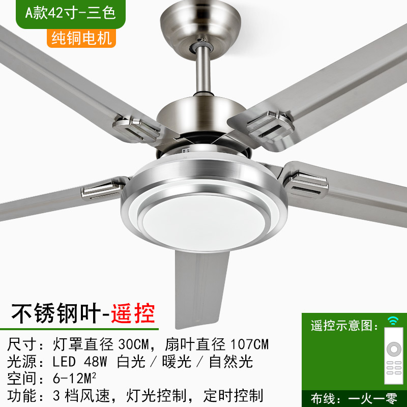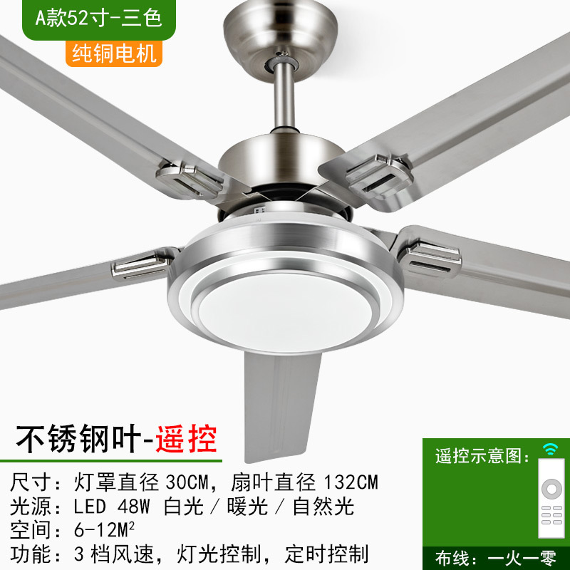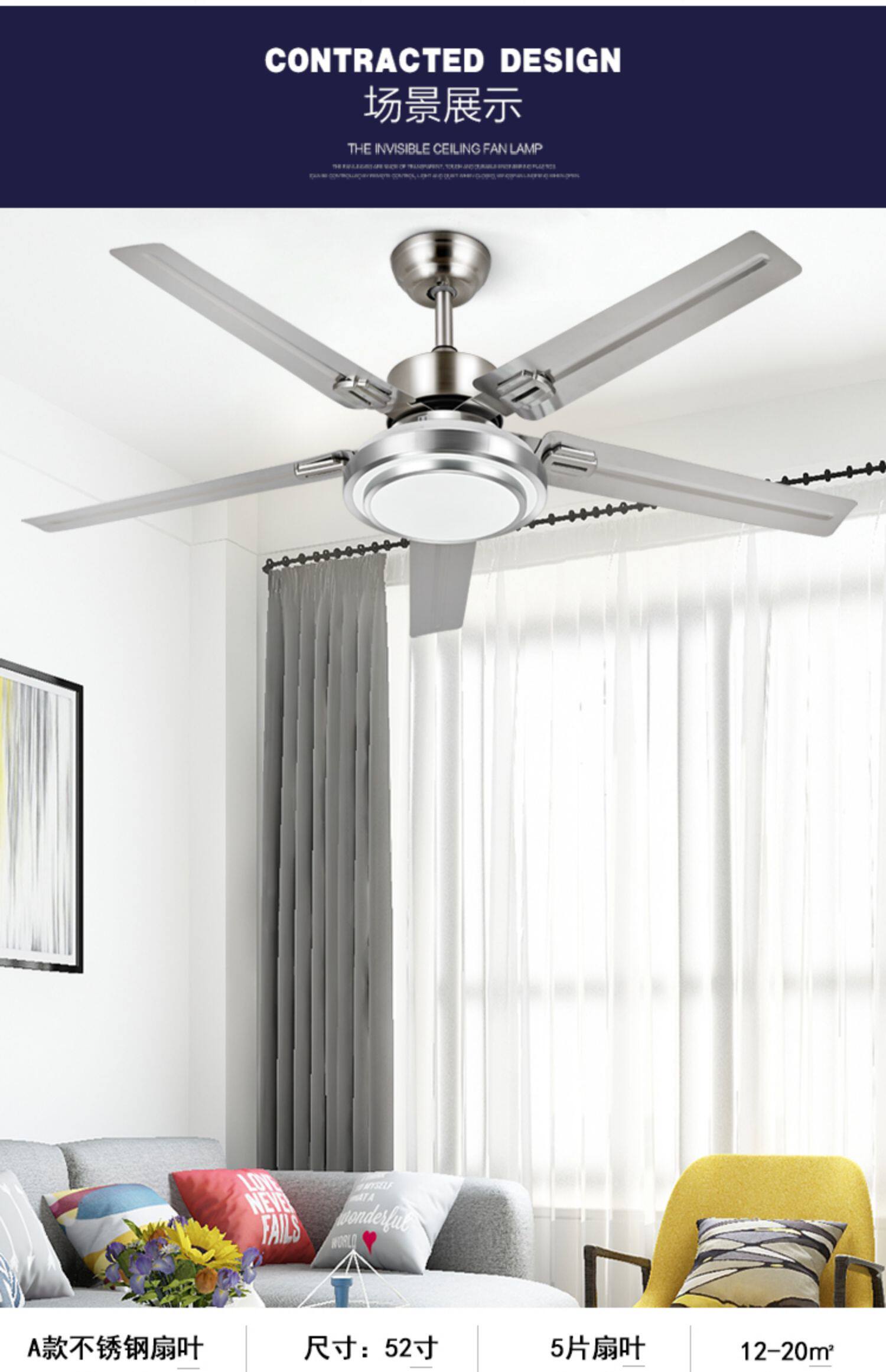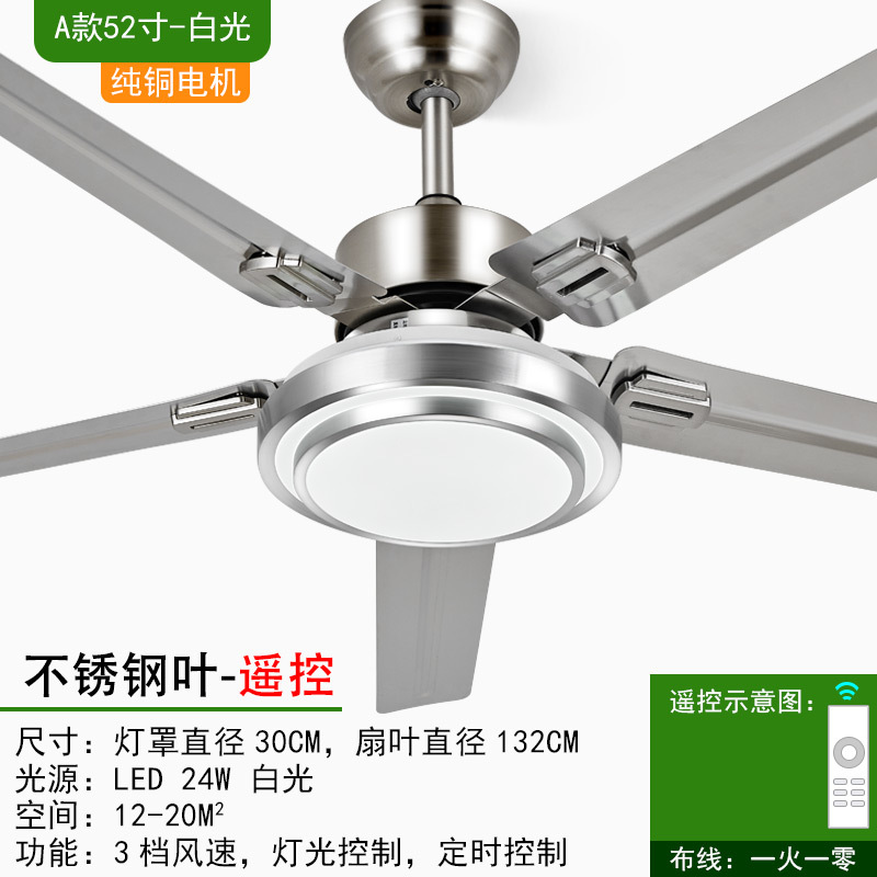 스테인레스 팬 램프 식당 천장 팬 램프 큰 바람 거실 사무실 공장 일체형 팬 샹들리에 램프 포함