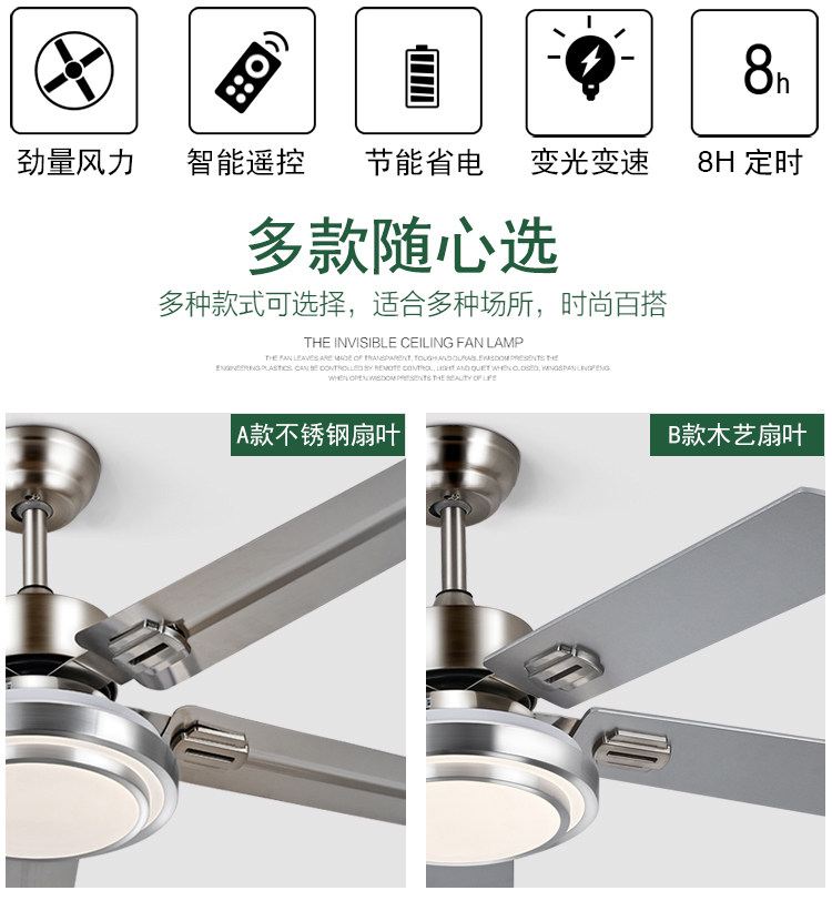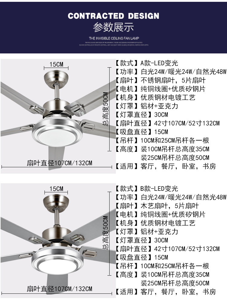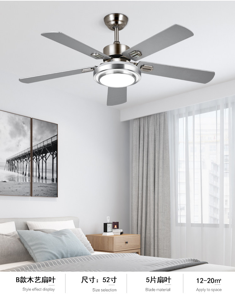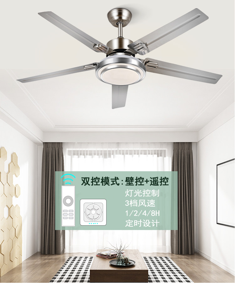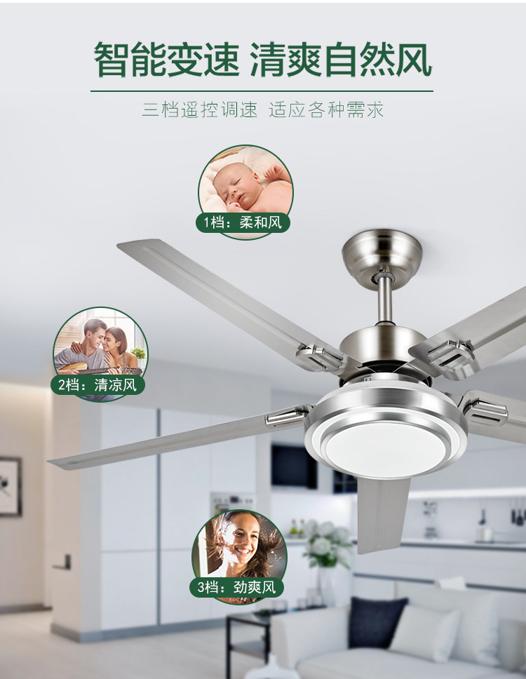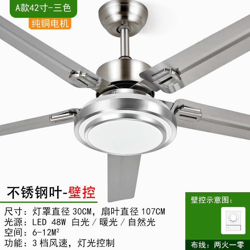 스테인레스 팬 램프 식당 천장 팬 램프 큰 바람 거실 사무실 공장 일체형 팬 샹들리에 램프 포함