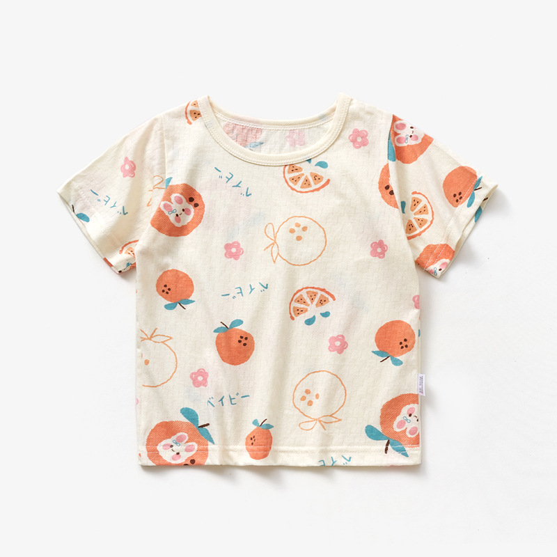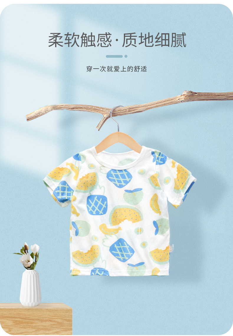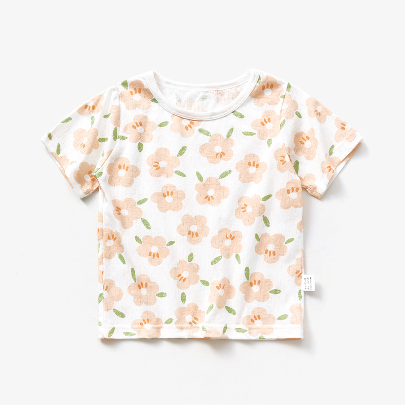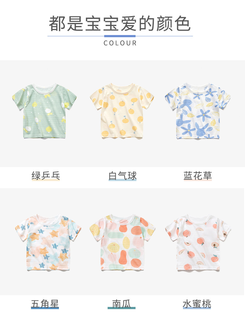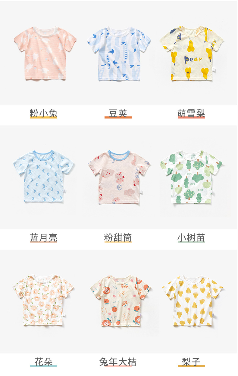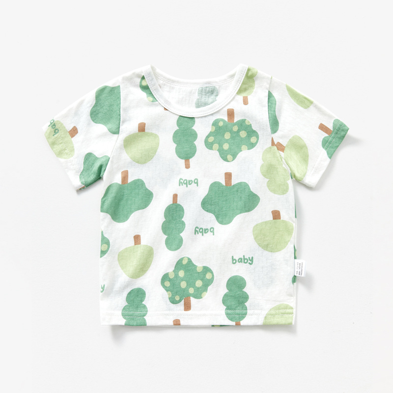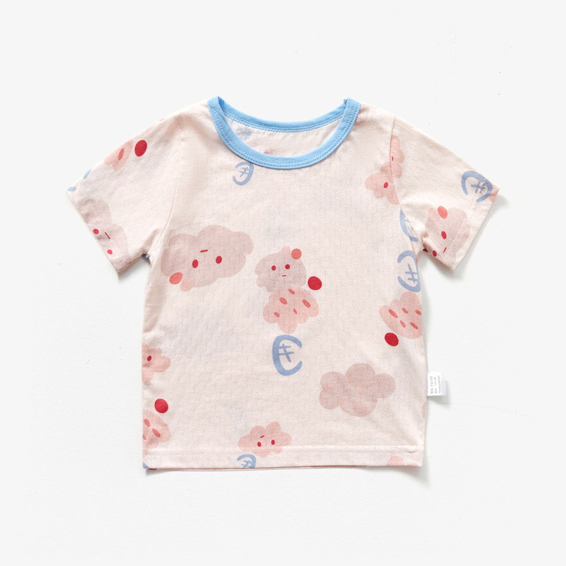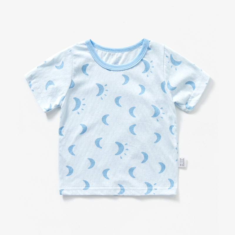 아기의 반소매 티셔츠 얇은 순면 아기의 여름 옷 Ins 스타일 인쇄 반소매 기본 레이어 셔츠 상단 소년 소녀스토어 가기