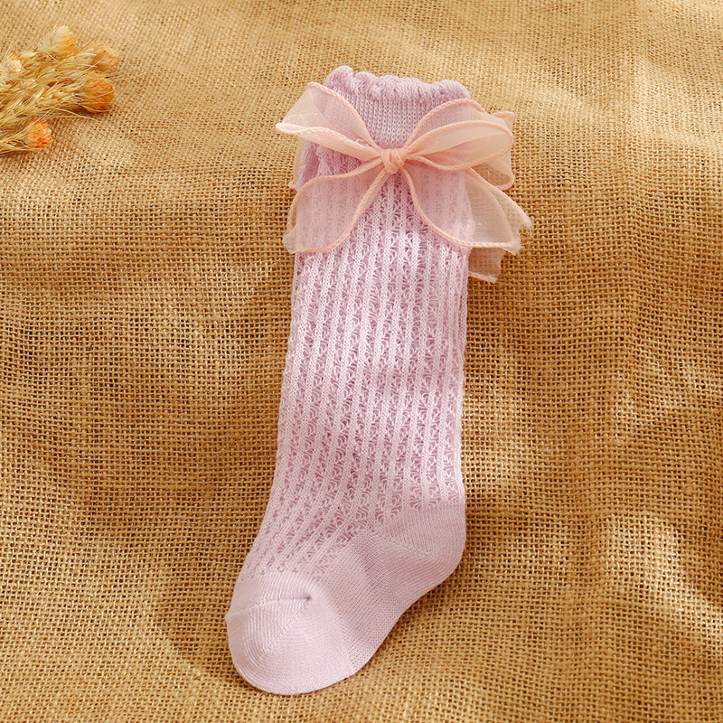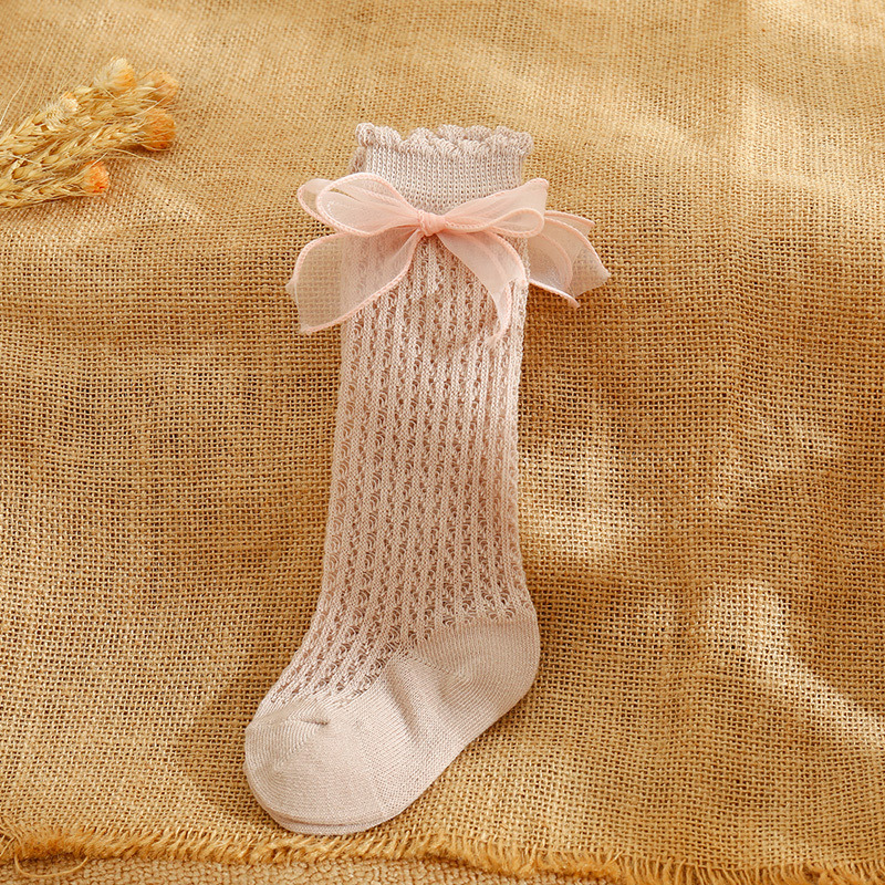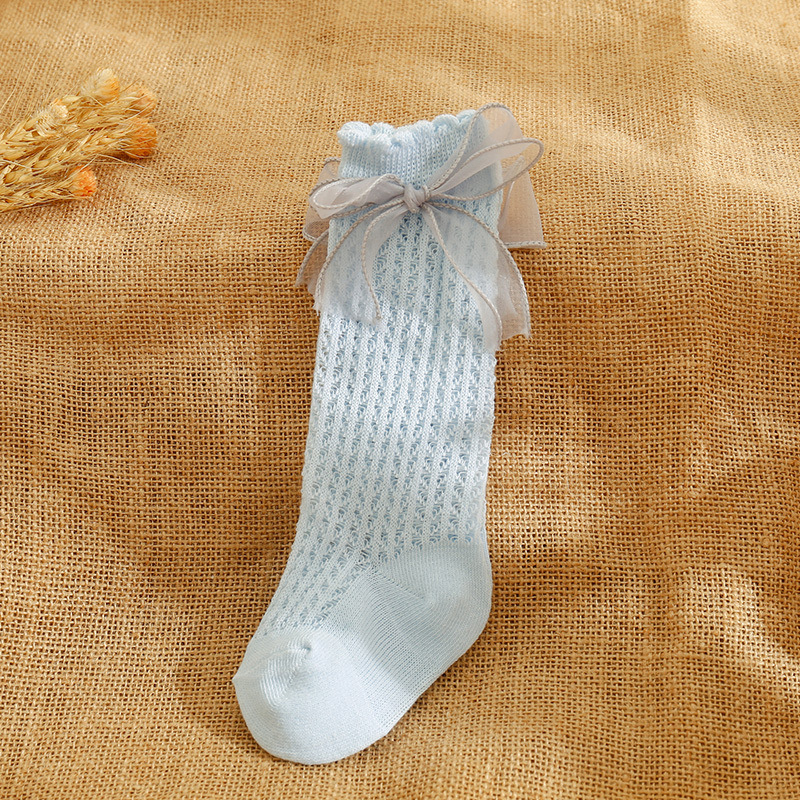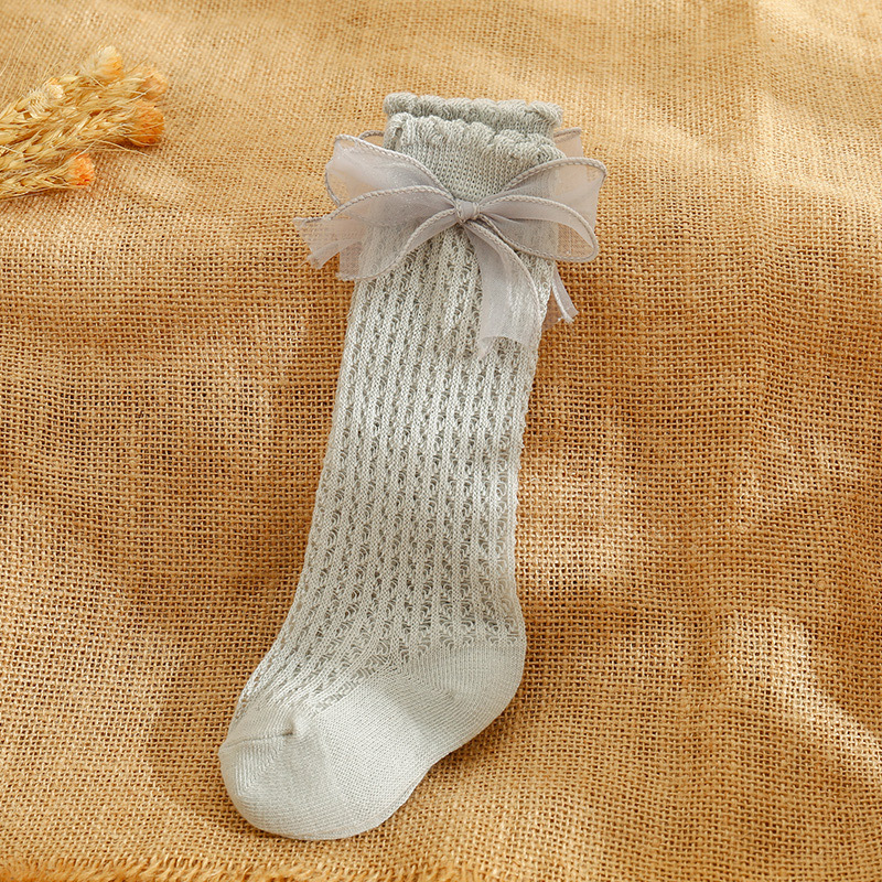 2024 스페인 스타일 아동용 리본 대형 메쉬 리본 중간 길이 양말 인스 핫템 양말 아기 양말