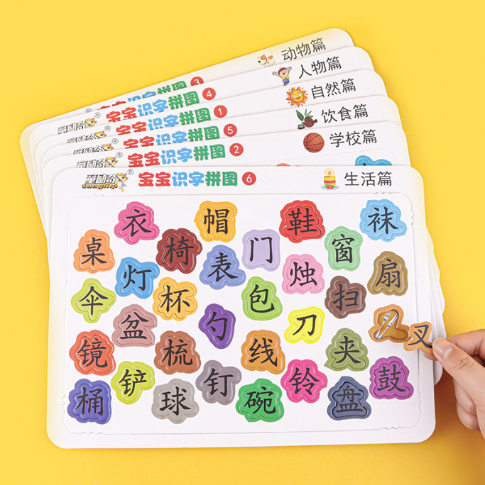 직소 어린이 문해력 직소 실용적인 캐릭터 인식 계몽 재미있는 유아 교육 우려 중국어 문자 인식 카드 문해력 장난감