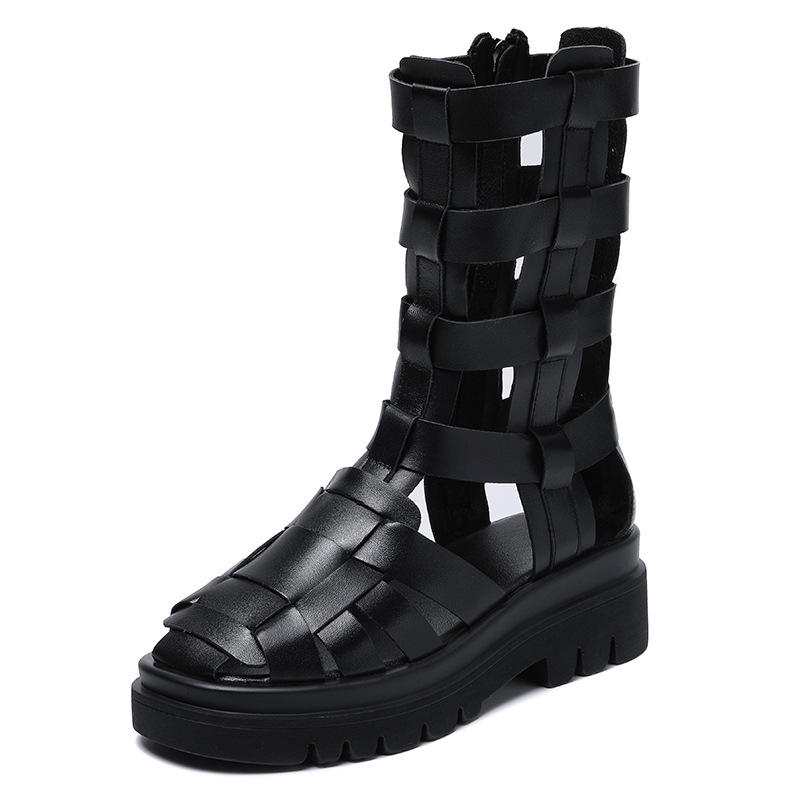 정품 가죽 디자인의 달콤하고 시크한 하이탑 샌들 여성용 2022 신상품 여름용 마틴 부츠 패션 인기 샌들
