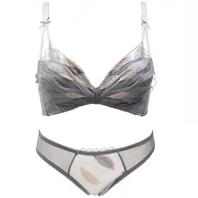 레이스 자수 속옷 여성용 스틸 링 개더 여름 작은 가슴 두꺼운 상단 Tuomei 등 얇은 처짐 방지 브래지어 속옷