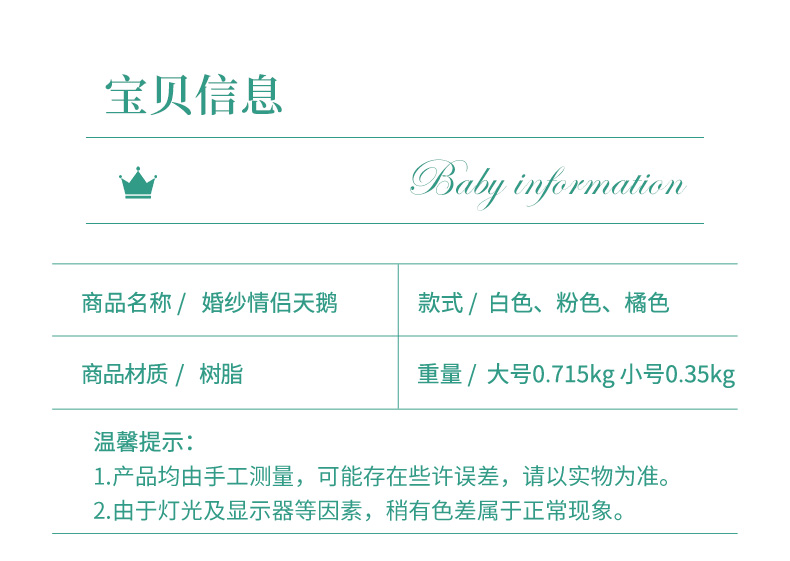 • 웨딩 커플 백조 스몰 사이즈-핑크