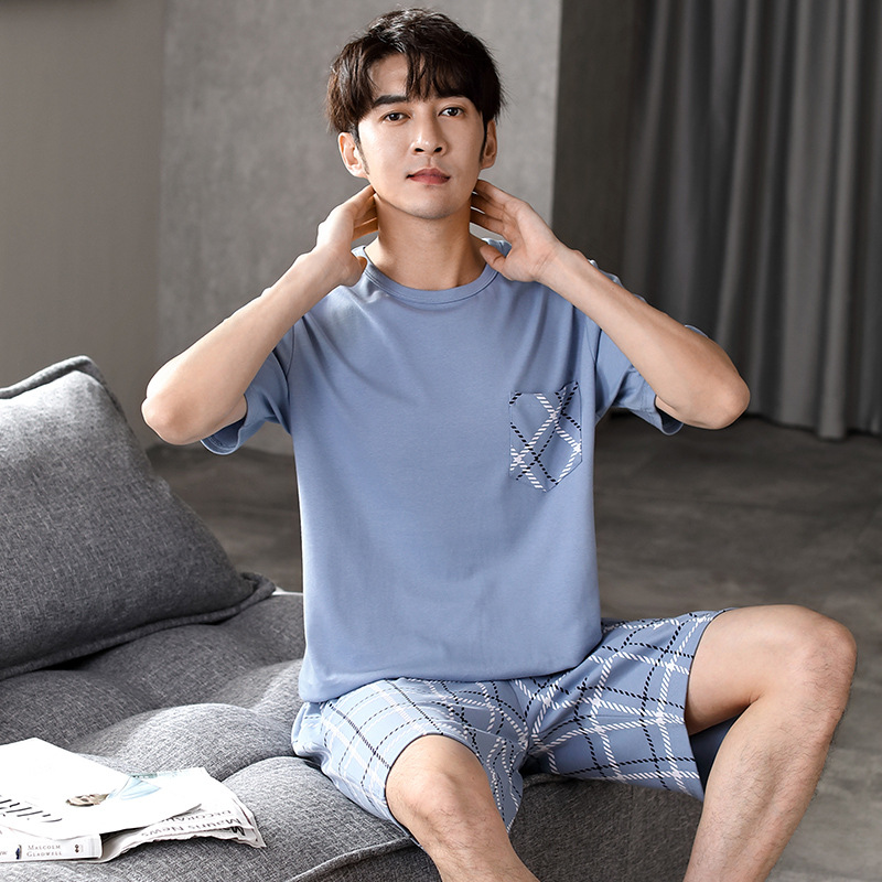 남자 잠옷 여름 면 반팔 2023 중년 아빠를위한 새로운 캐주얼 심플 아웃웨어 세트스토어 가기