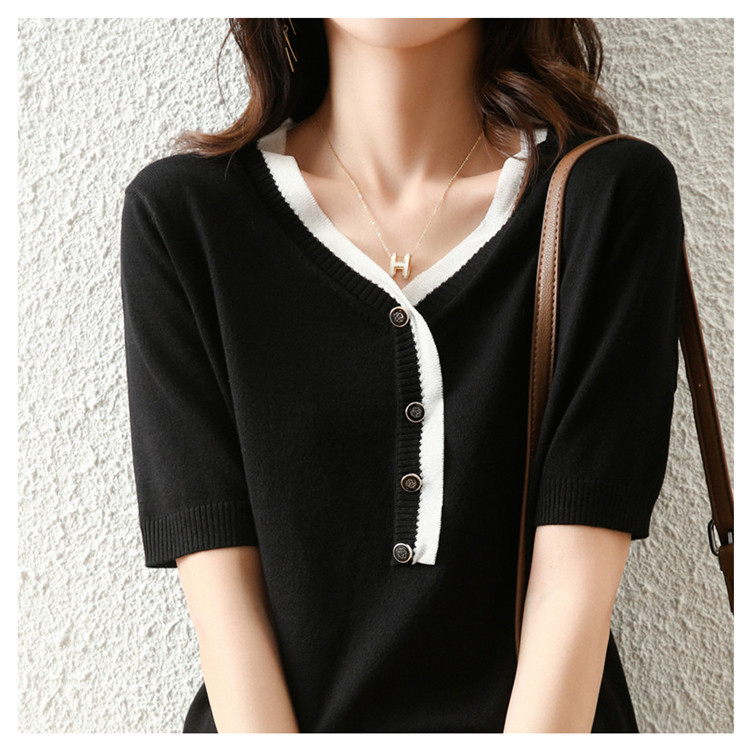 Worsted 반팔 티셔츠 여성용 여름 2022 새로운 느슨한 V-넥 메쉬 스티치 얇은 니트 셔츠 샤넬 스타일 여성용 탑스토어 가기