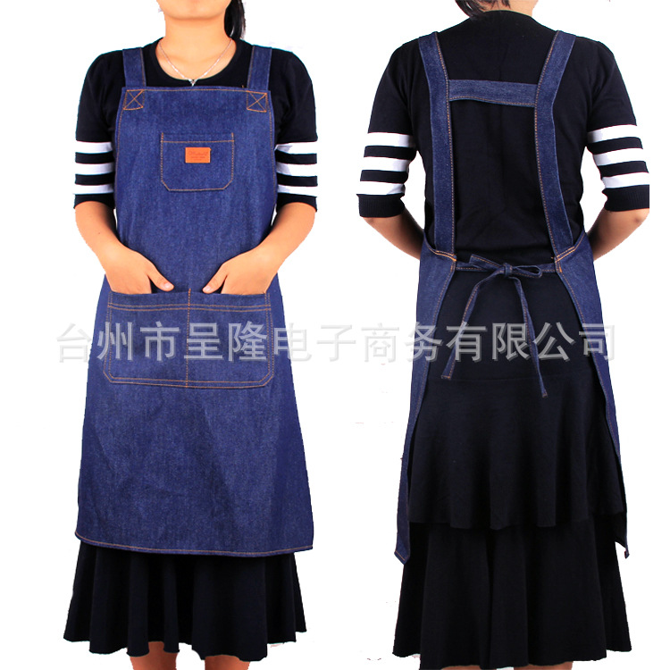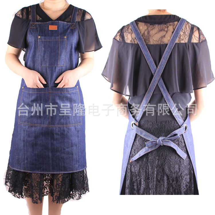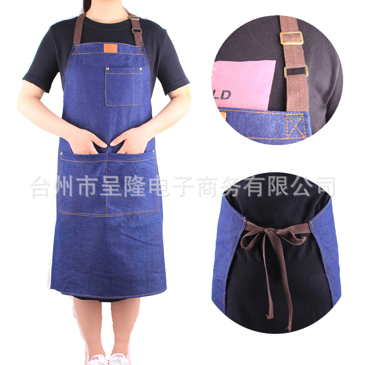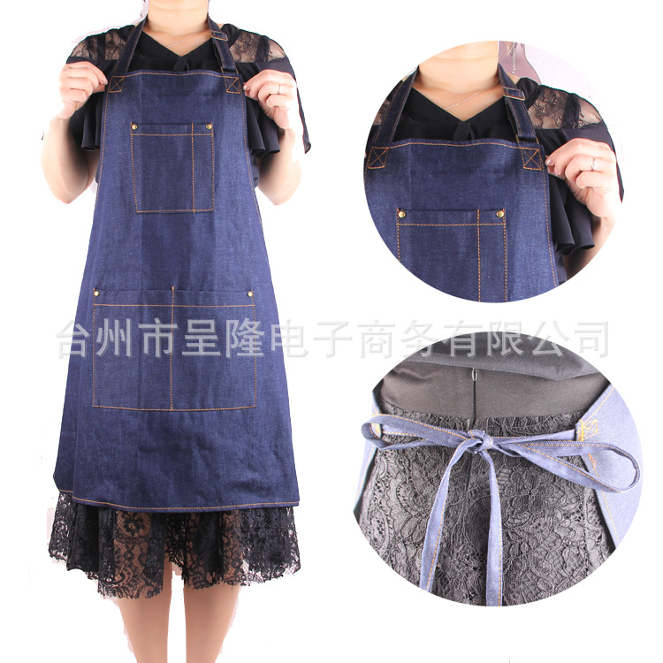 패션 데님 앞치마 두꺼운 주방 카페 밀크티 숍 남성과 여성 작업복스토어 가기