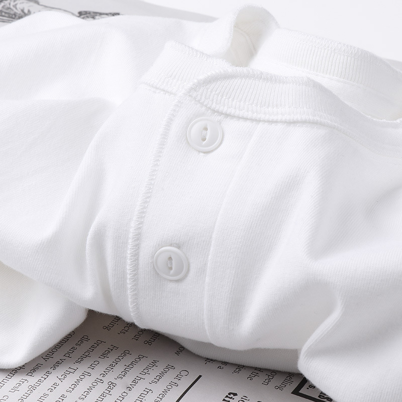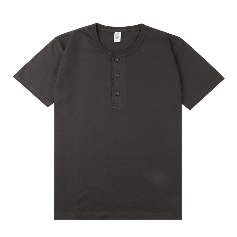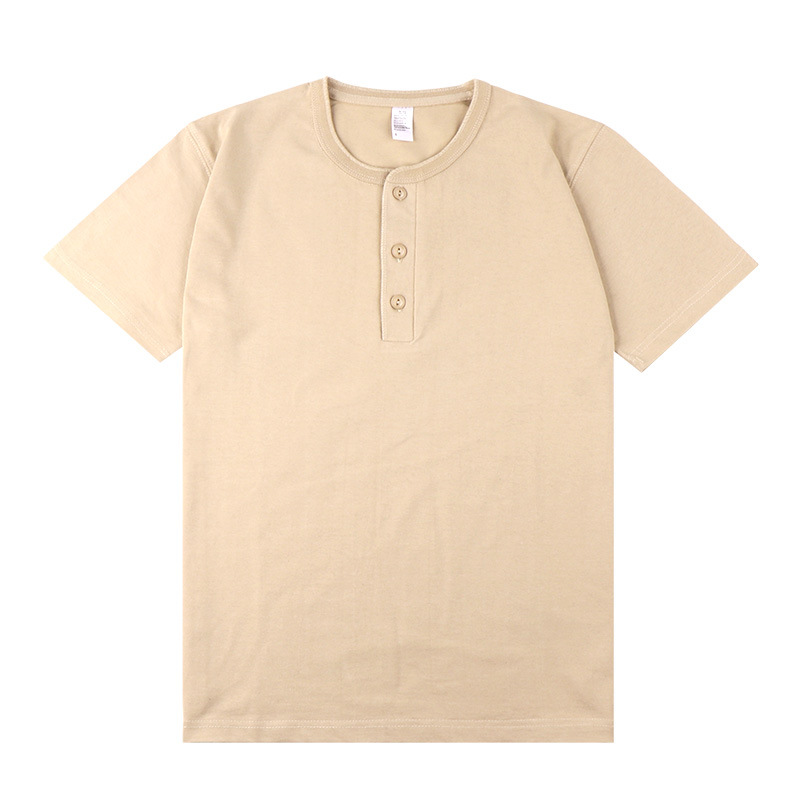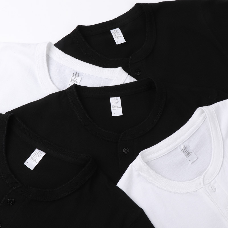 일본 퓨어 화이트 250g 무거운면 헨리 칼라 반팔 티셔츠 단색 숄더 폴로 셔츠베이스 코트