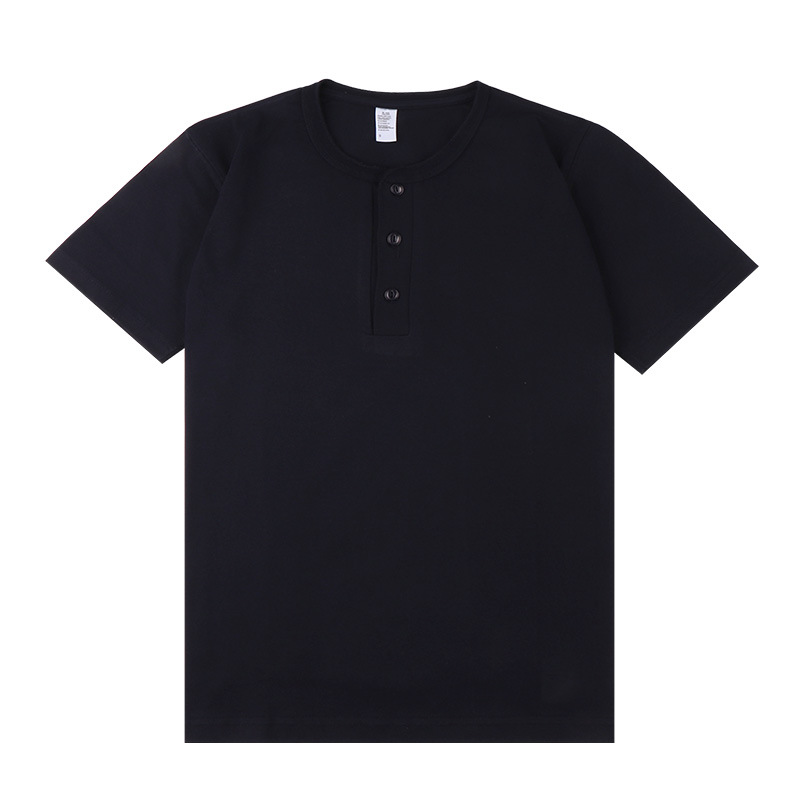 일본 퓨어 화이트 250g 무거운면 헨리 칼라 반팔 티셔츠 단색 숄더 폴로 셔츠베이스 코트스토어 가기