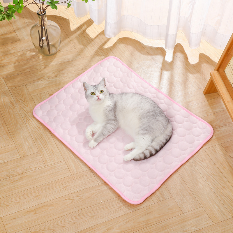 【产品说明】此款冰丝凉垫是薄款的,一面凉感面料,一面是网孔面料,比较柔软,可使用于地板/沙发/床上/窝里等,手感凉丝丝的,不是冰凉的那种,太凉了对小宠的肠胃不好。