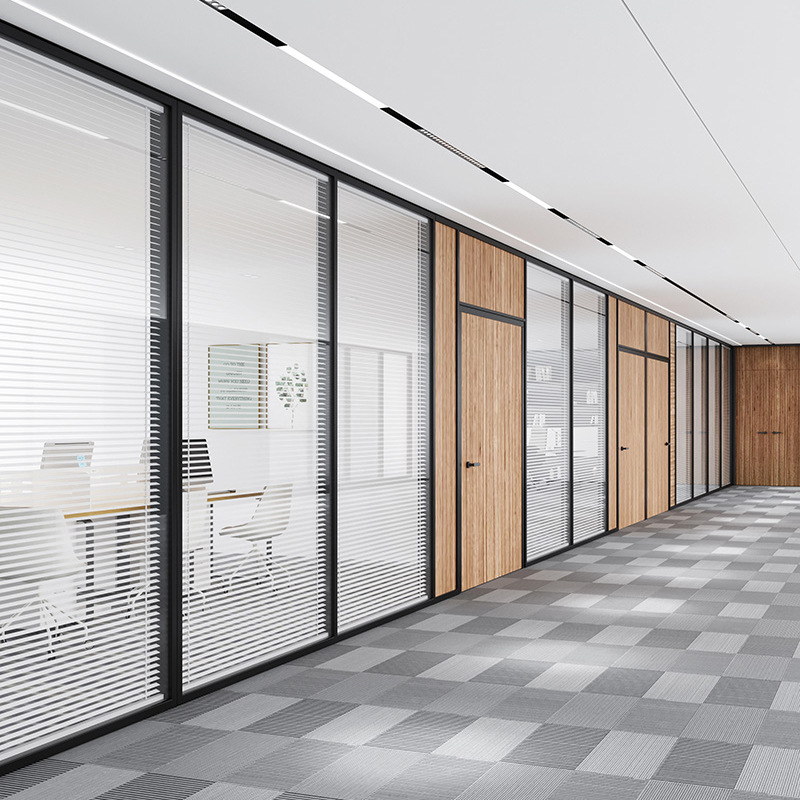 사무실 유리 칸막이 벽 단일/이중 유리 알루미늄 합금 중공 강화 유리 스크린 방음 방화 사무실 칸막이