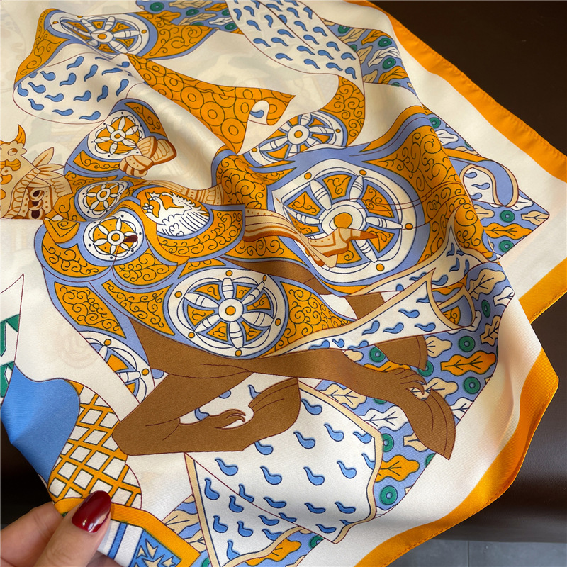 만화 초상화 스카프 스카프 여성의 봄과 여름 새로운 스타일 스카프 숄 능직 실크 대형 사각 머리 스카프 자외선 차단제 스카프스토어 가기