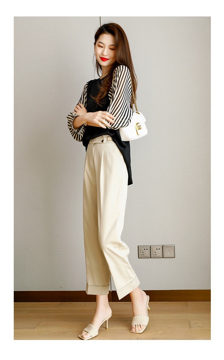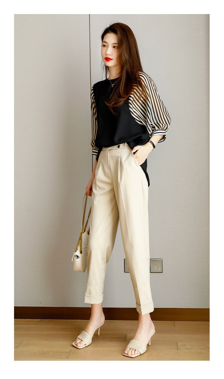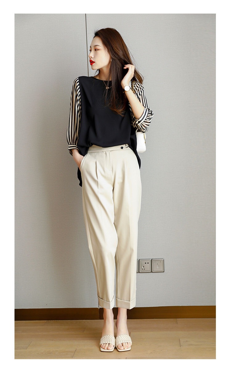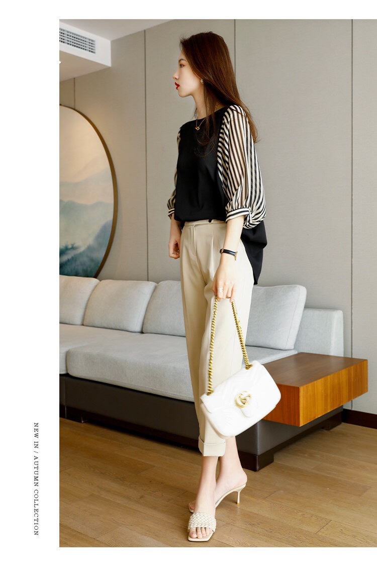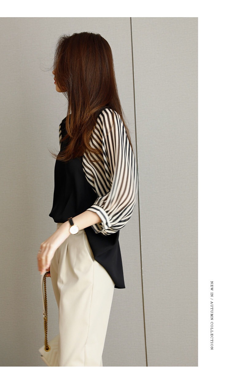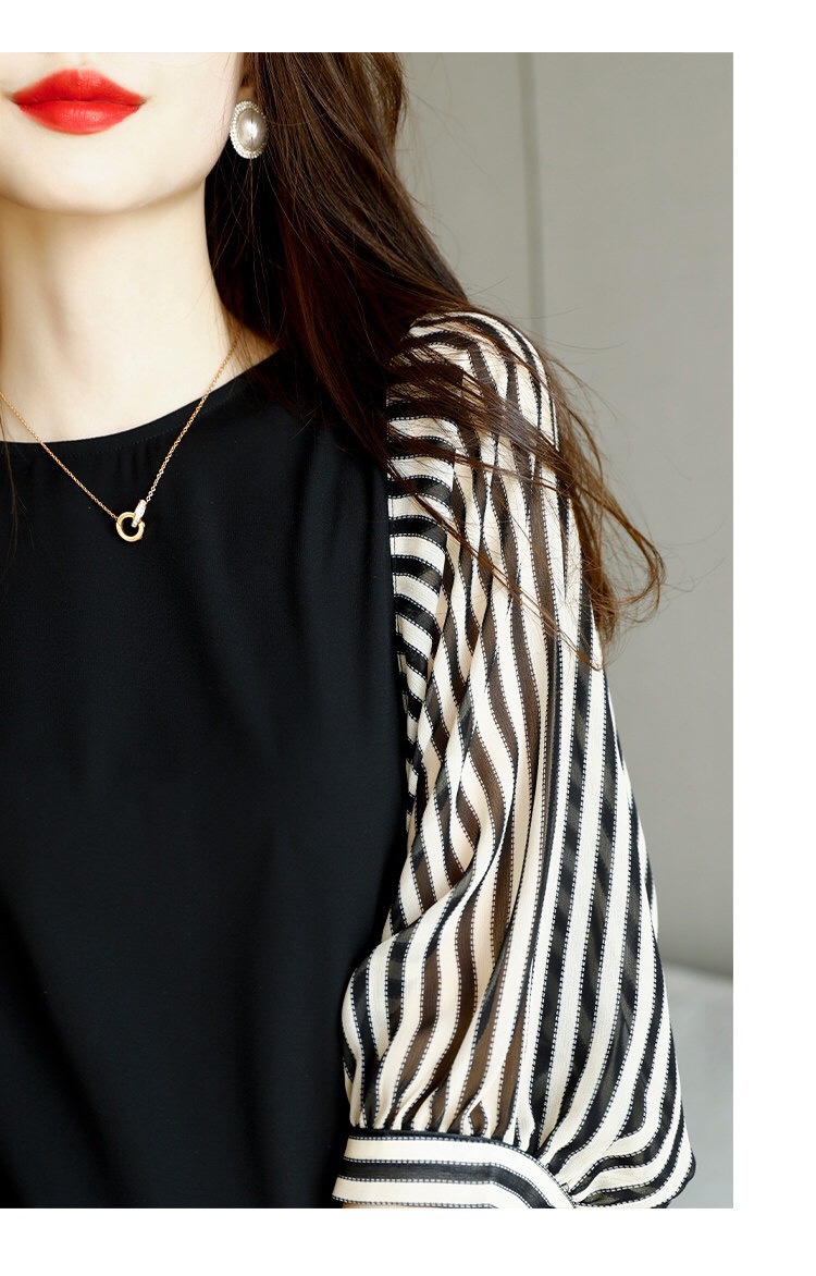 대조 색상 스티칭 박쥐 슬리브 쉬폰 탑 여성용 2022 새로운 패션 느슨한 풀오버 라운드 넥 우아한 중간 소매 셔츠