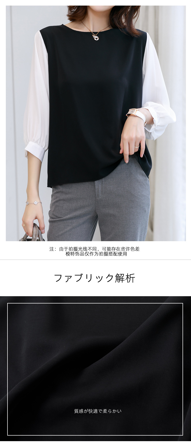 대조 색상 스티칭 박쥐 슬리브 쉬폰 탑 여성용 2022 새로운 패션 느슨한 풀오버 라운드 넥 우아한 중간 소매 셔츠스토어 가기