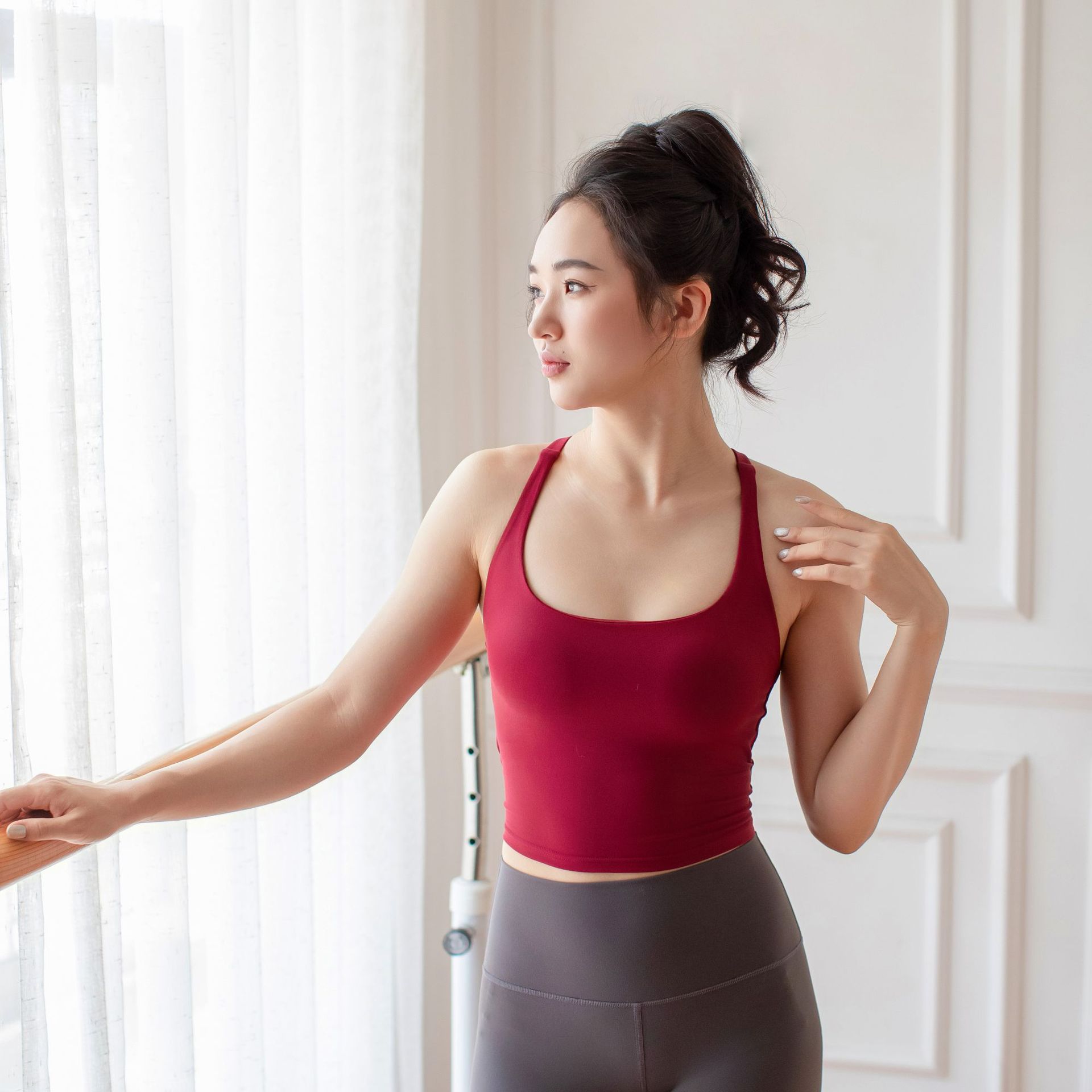 높은 탄성 피트니스 요가 세트 스포츠 브라 가슴 패드 조끼 여성의 슬림 핏 아름다운 등 짧은 탑 요가 세트 여성의 여름