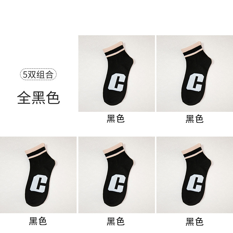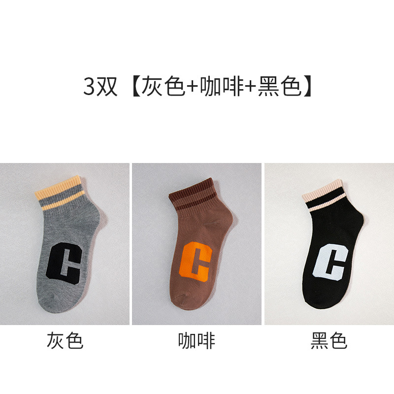 양말 남성용 짧은 양말 여름 얇은 단색 모든 매치 스트라이프 문자 짧은 튜브 양말 여성은 가을과 겨울에 떨어지지 않습니다.